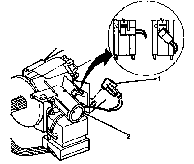 7. Slide the 2 connectors (2) of the turn signal and multifunction switch assembly out of the bulkhead connector (1).