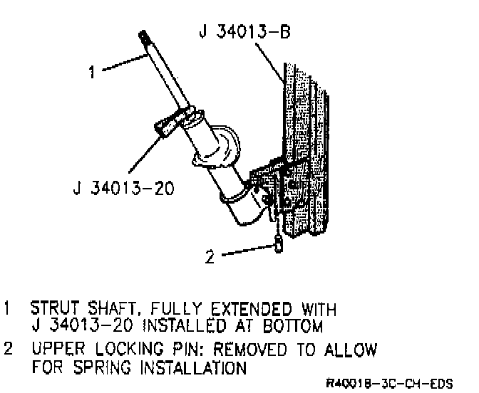 1. Strut in strut compressor J 34013-B with J 34013-20 clamped on strut shaft in strut compressor.