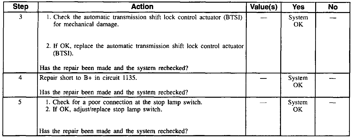 Chart #1 Transaxle Does Not Shift Out Of PARK With Brake Pedal Depressed And Ignition Switch In RUN (Part 2 Of 2):