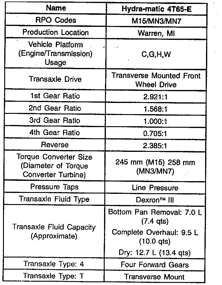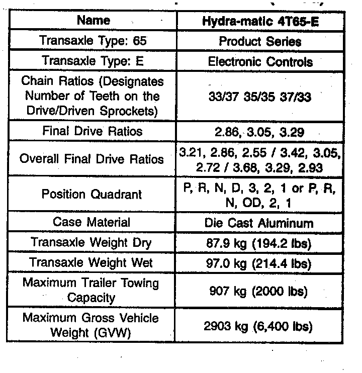 Transaxle General Specifications
