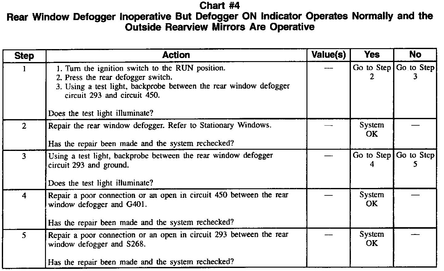 Chart #4 Rear Window Defogger Is Inoperative