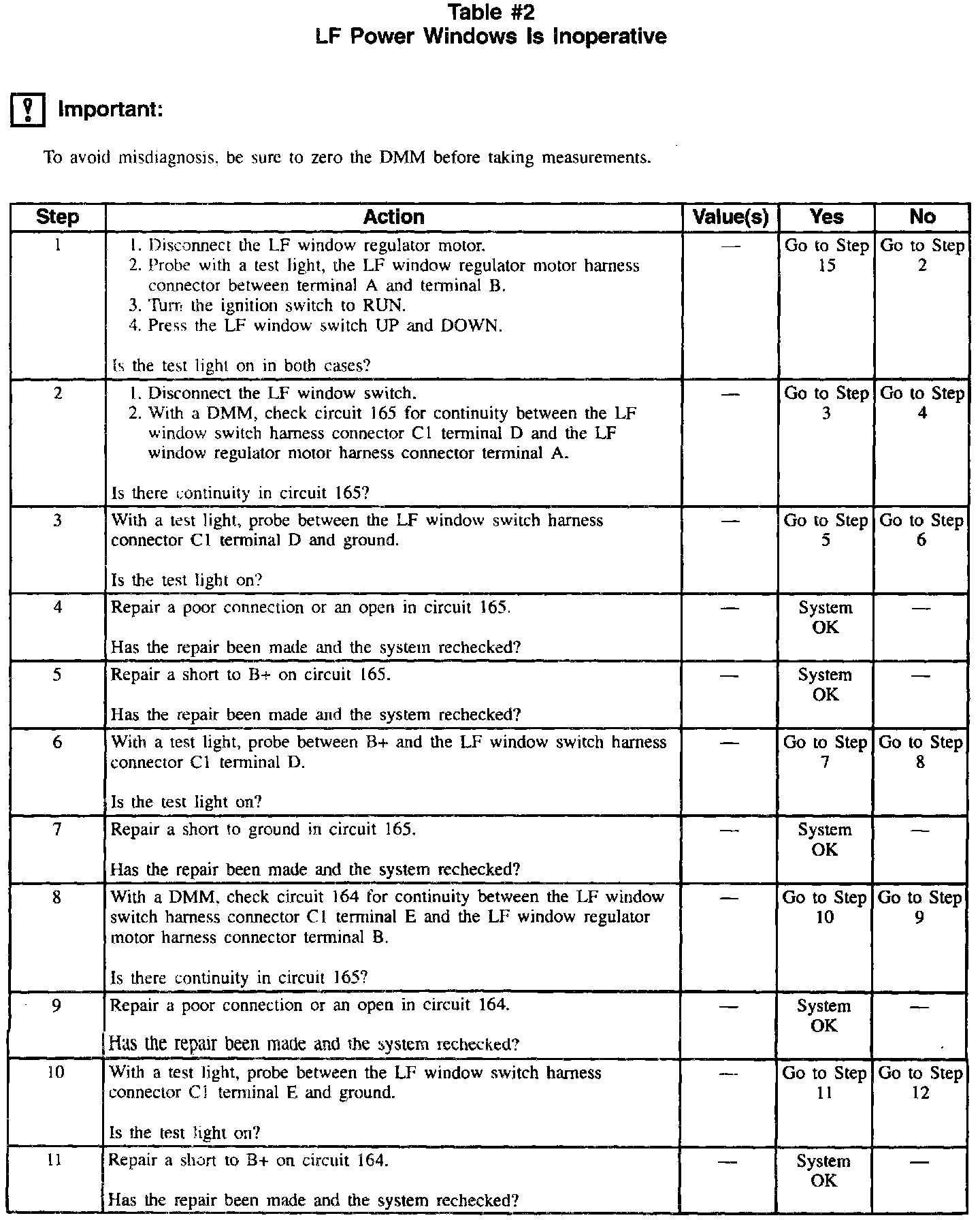 Table #2 LF Power Windows Is Inoperative (Part 1 Of 2):