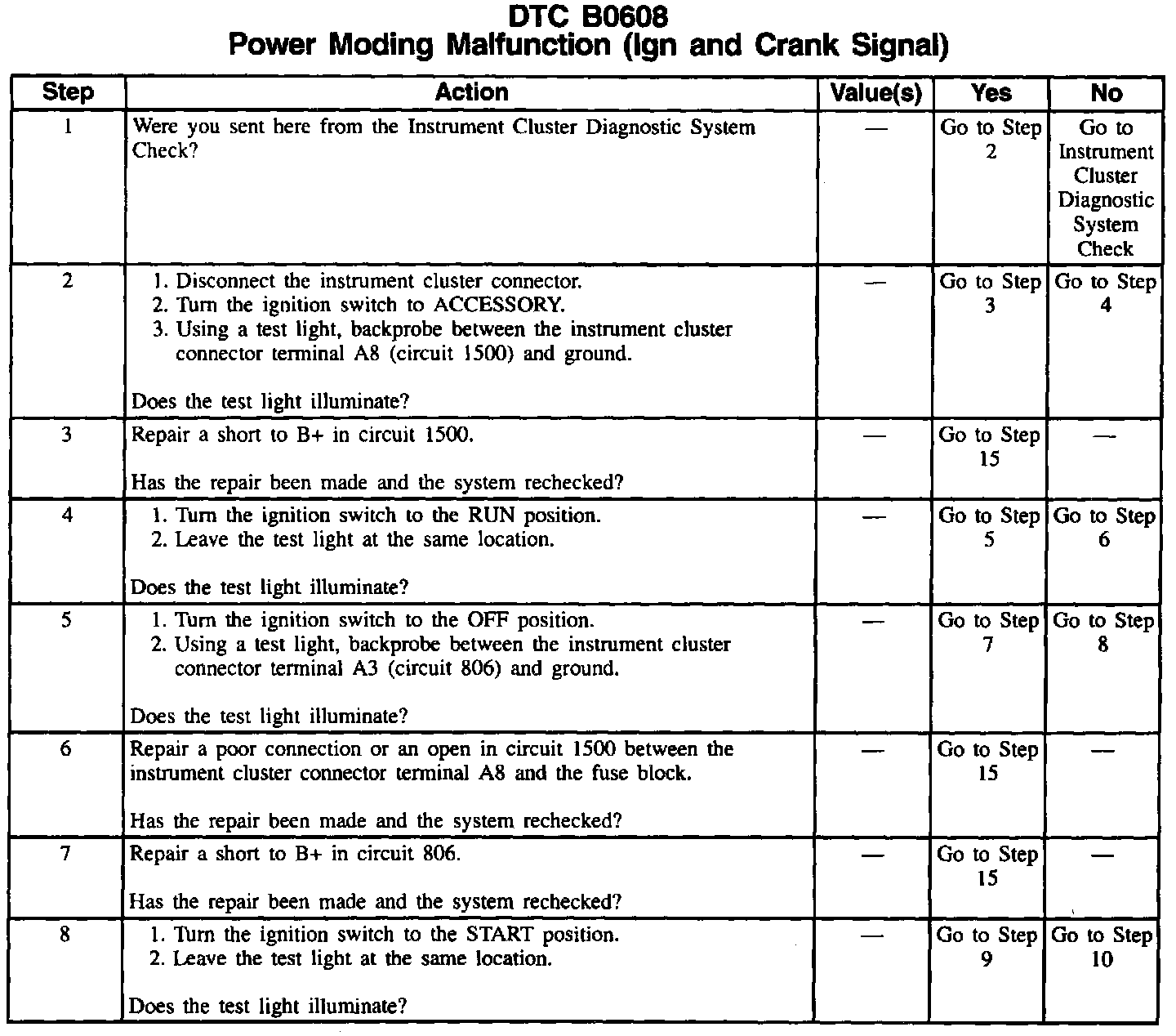 1. Always perform the Instrument Cluster Diagnostic System Check before attempting to diagnose a DTC B0608.