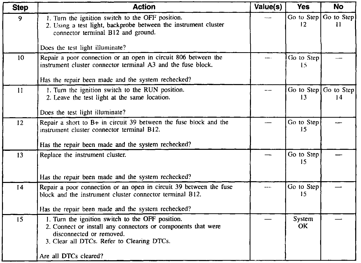 ^ The instrument cluster no longer detects an open or short to B+.