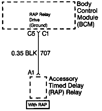 ^ BCM detects a short to ground or open in the RAP circuit (circuit 707) when the RAP relay is inactive or off.