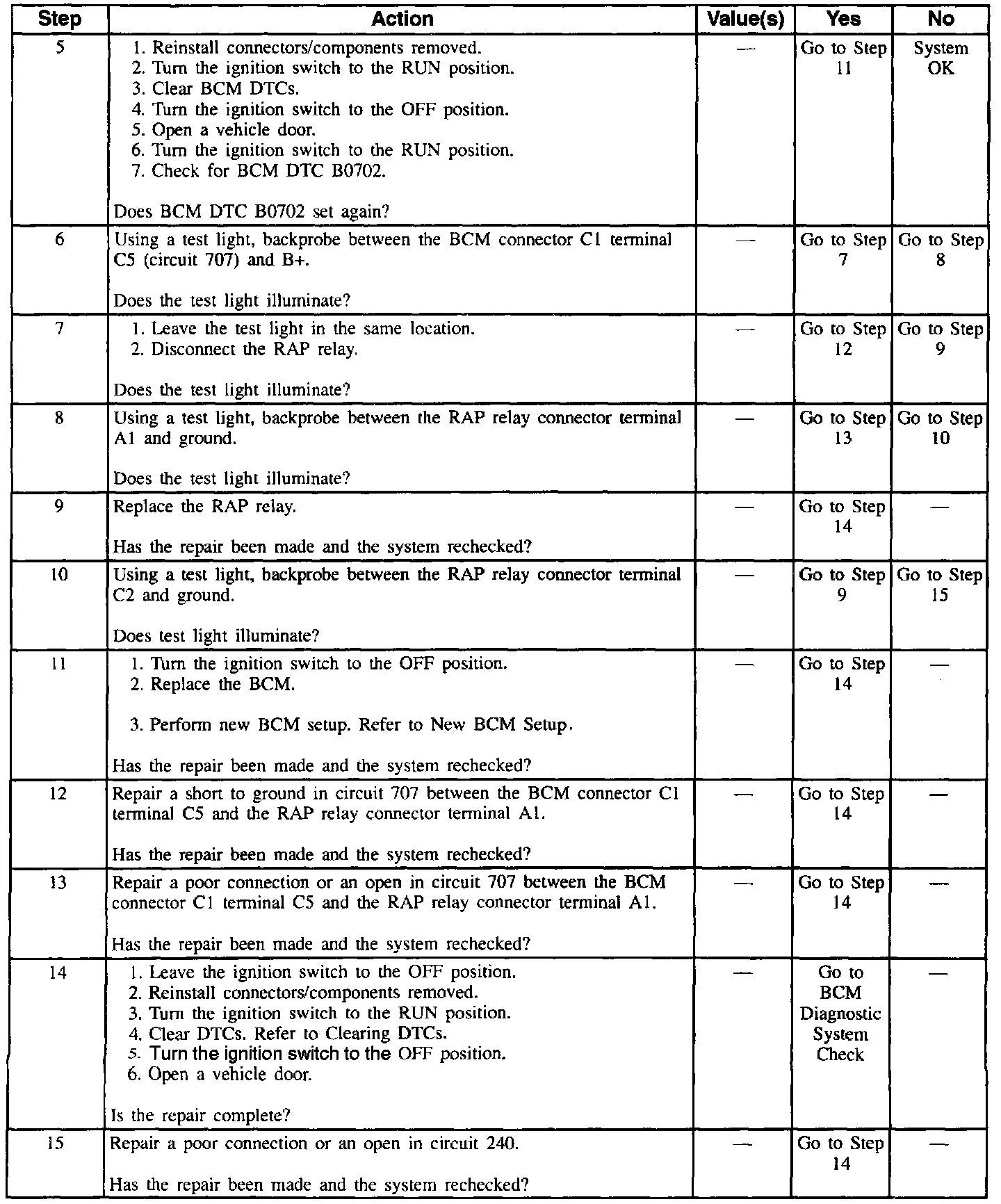 ^ A short to ground or an open in the RAP relay circuit (circuit 707) is no longer detected by the BCM when the RAP relay is de-energized.