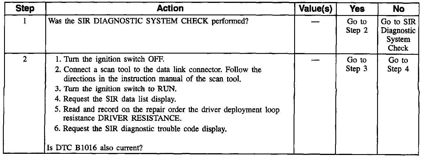 When you first turn the ignition switch to the RUN position, the inflatable restraint Sensing and Diagnostic Module (SDM) performs tests to diagnose critical malfunctions within itself. Next, the SDM measures IGNITION and the deployment loop voltages to make sure they are within their respective normal voltage ranges. Then the SDM proceeds with the RESISTANCE MEASUREMENT test. During one portion of the RESISTANCE MEASUREMENT test, the SDM does the following: