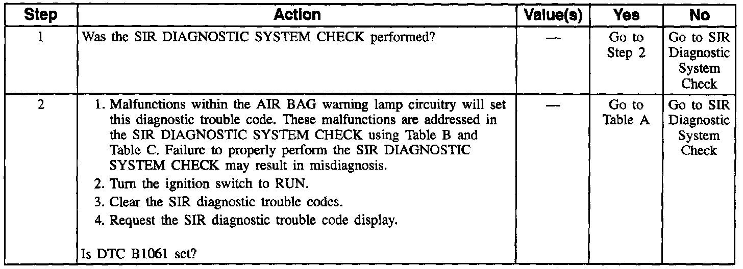 Refer to TABLES B Table B Air Bag Warning Lamp Comes On Steady