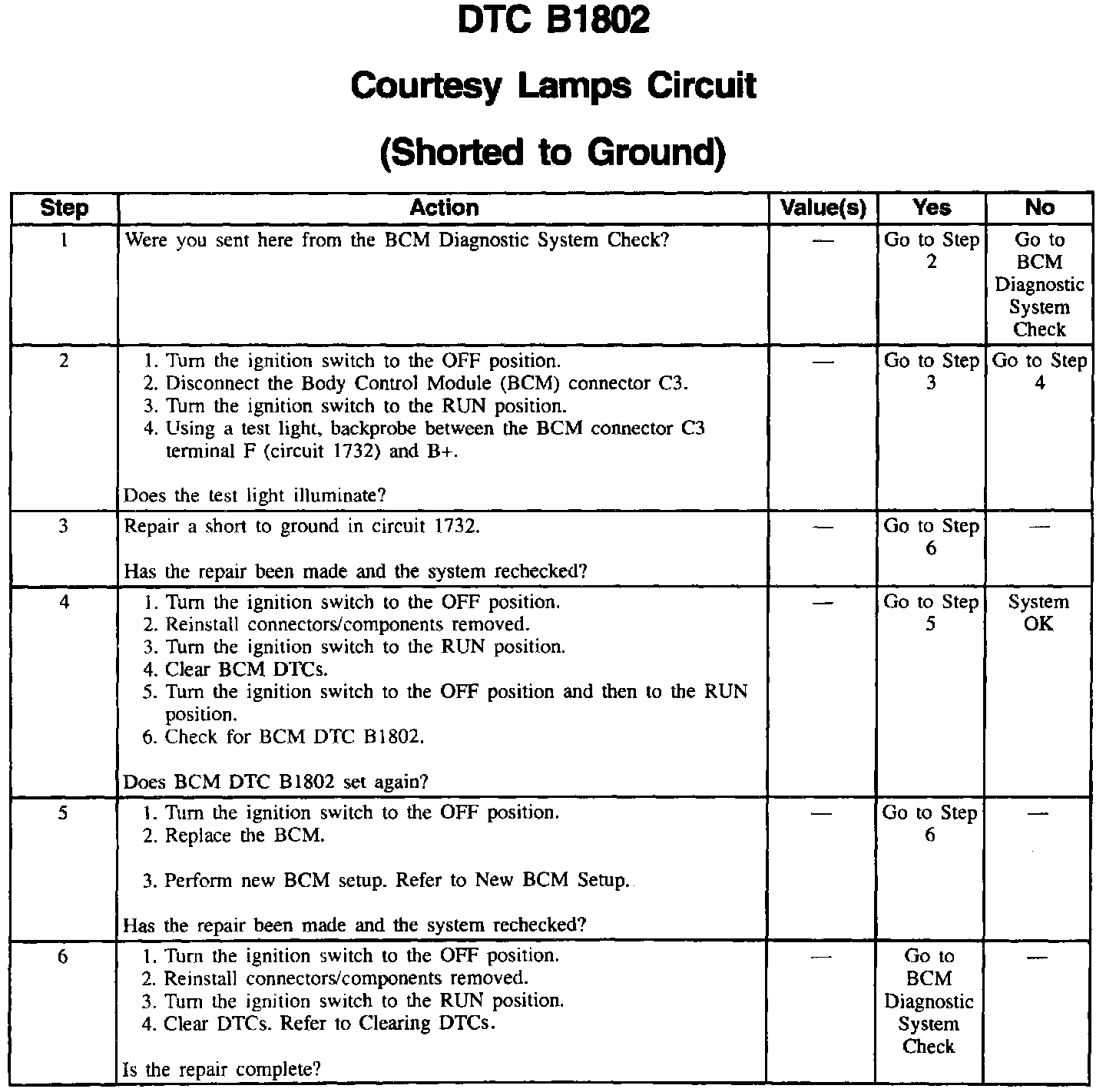 1. Always perform the BCM Diagnostic System Check before attempting to diagnose a DTC B1802.