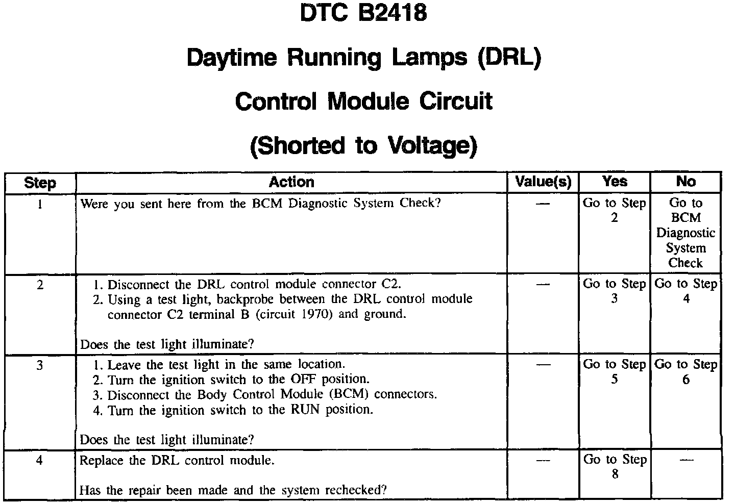 DTC B2418 Daytime Running Lamps (DRL) Control Module Circuit (Part 2 Of 2):