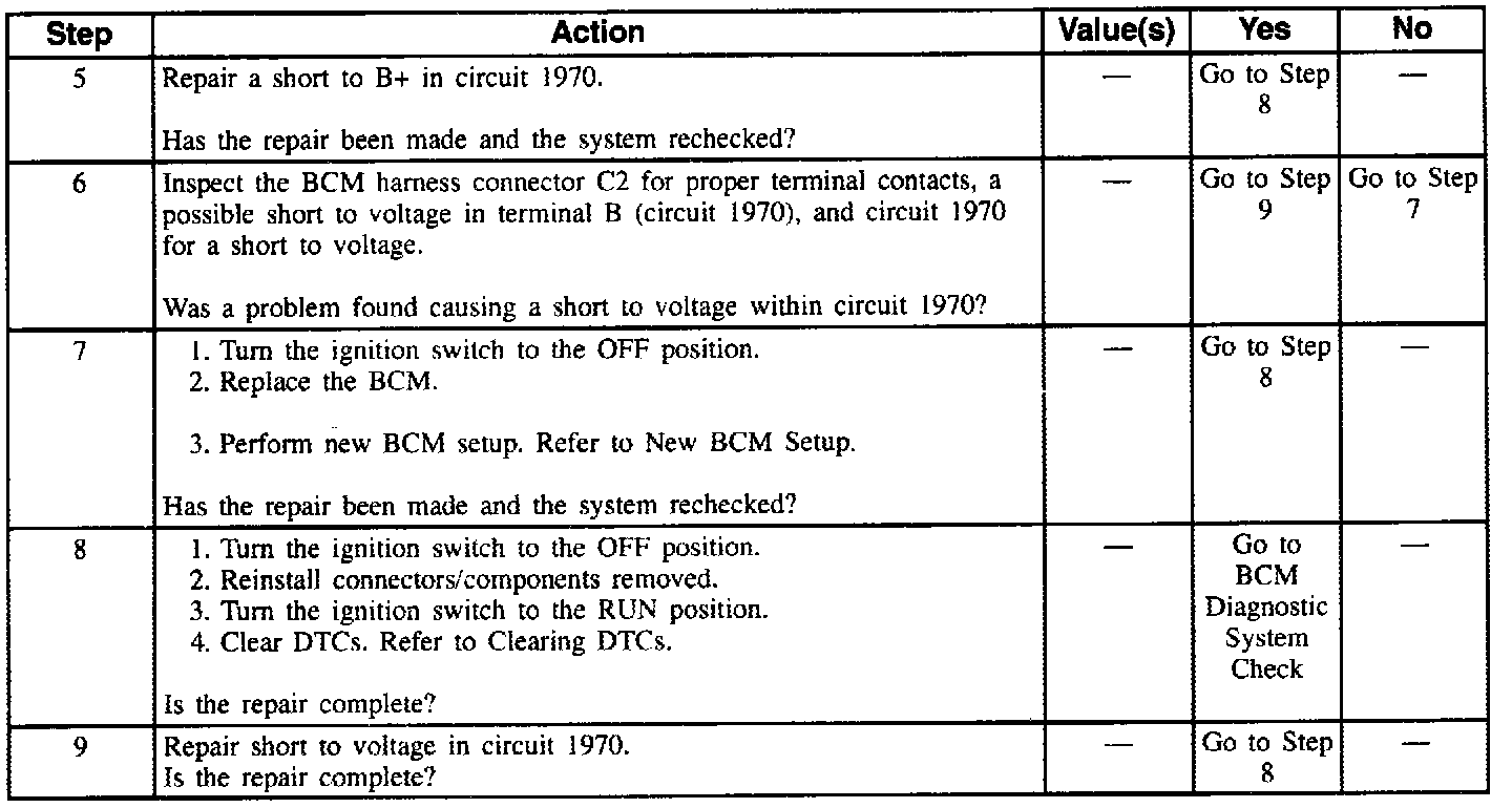 3. Determines if there is a short to B+ in circuit 1970 or the BCM.