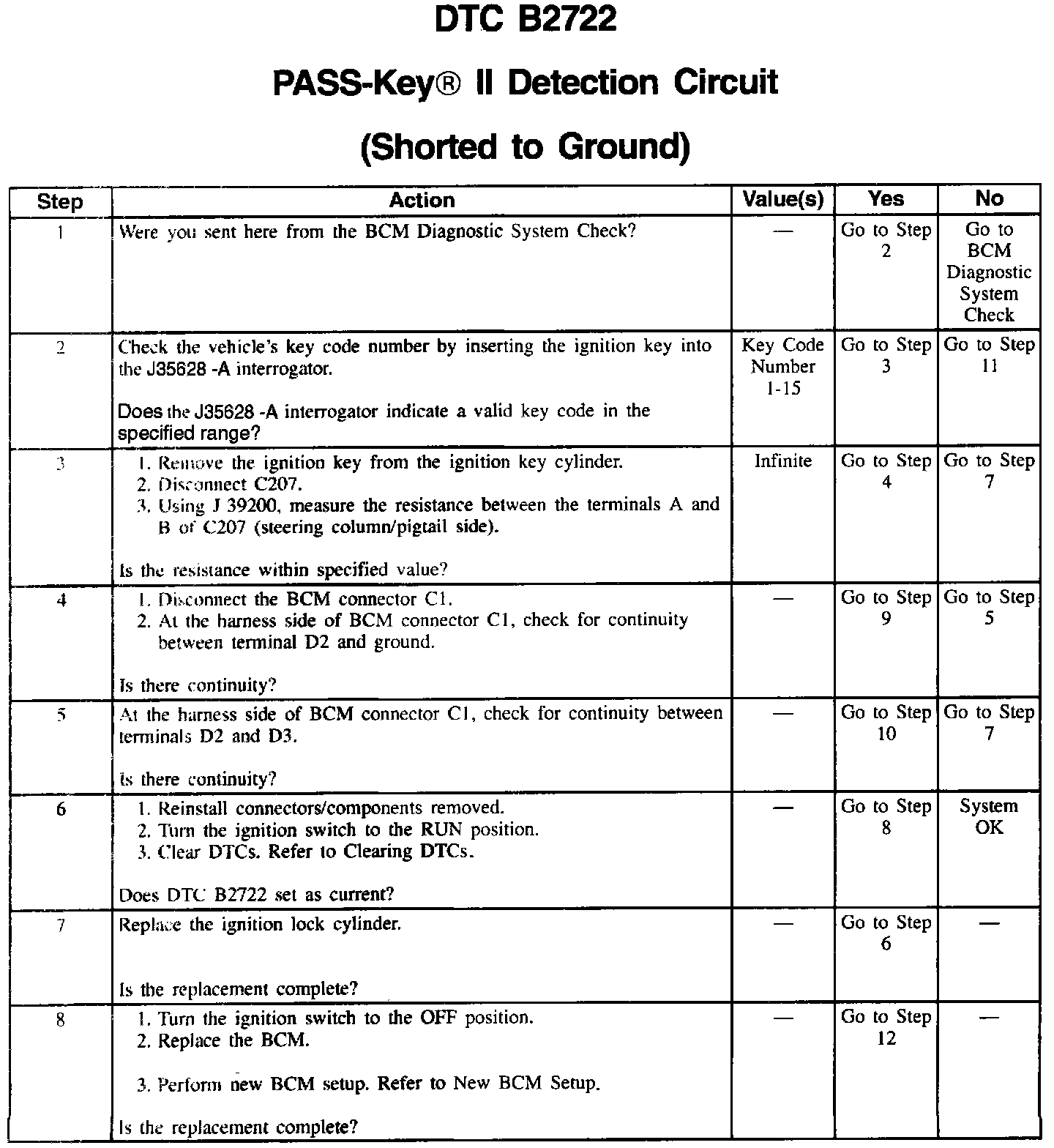 DTC B2722 Pass-Key (R) II Detection Circuit (Part 2 Of 2):