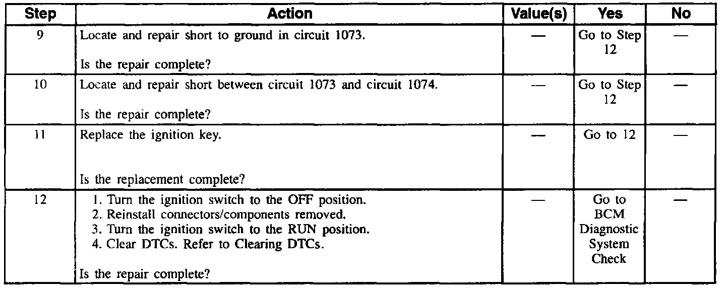 5. Checks for a short between circuit 1073 and circuit 1074, which the BCM would interpret this as a short to ground.