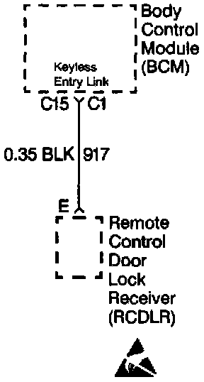 The Body Control Module (BCM) receives a message from the Remote Control Door Lock Receiver (RCDLR) indicating which operation needs to be accomplished. If the BCM detects a parity error from the RCDLR, a fault condition is present and a DTC will set.