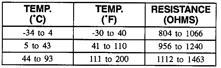 This table contains resistance values for the front wheel speed sensors at varying temperatures for use in diagnosis. The values are approximate and should be used as a guideline for diagnosis.