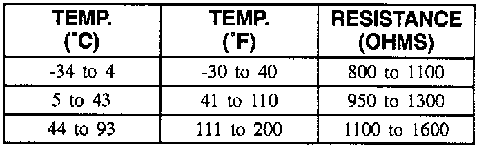 This table contains resistance values for the rear wheel speed sensors at varying temperatures for use in diagnosis. The values are approximate and should be used as a guideline for diagnosis.