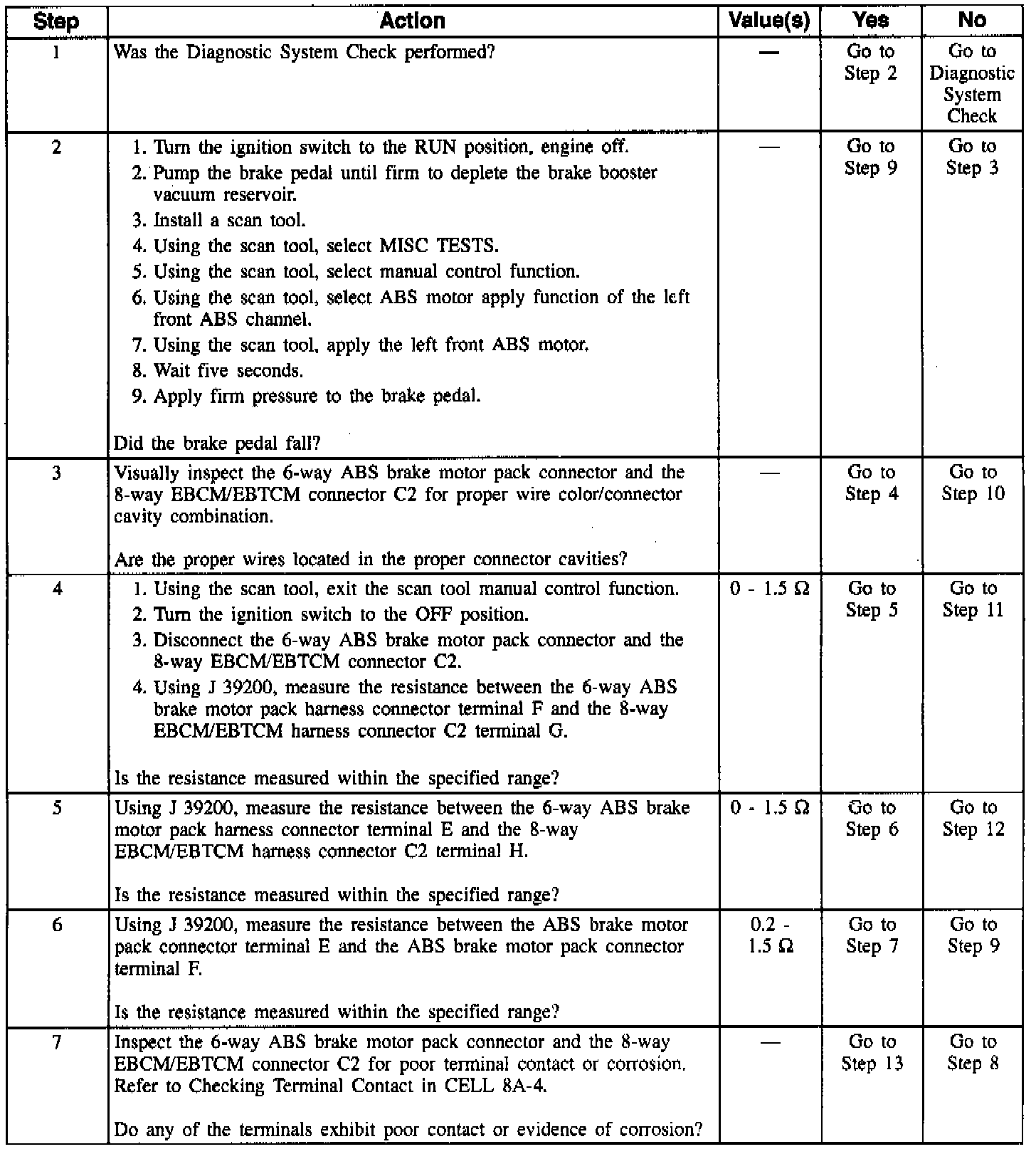 If an ESB cannot hold a piston in the home position, the piston may be back driven when the brake pedal is applied, causing the brake pedal to drop. A malfunction DTC is stored, ABS/ETS is disabled, the amber ABS warning indicator and the red BRAKE warning indicator are fumed on.