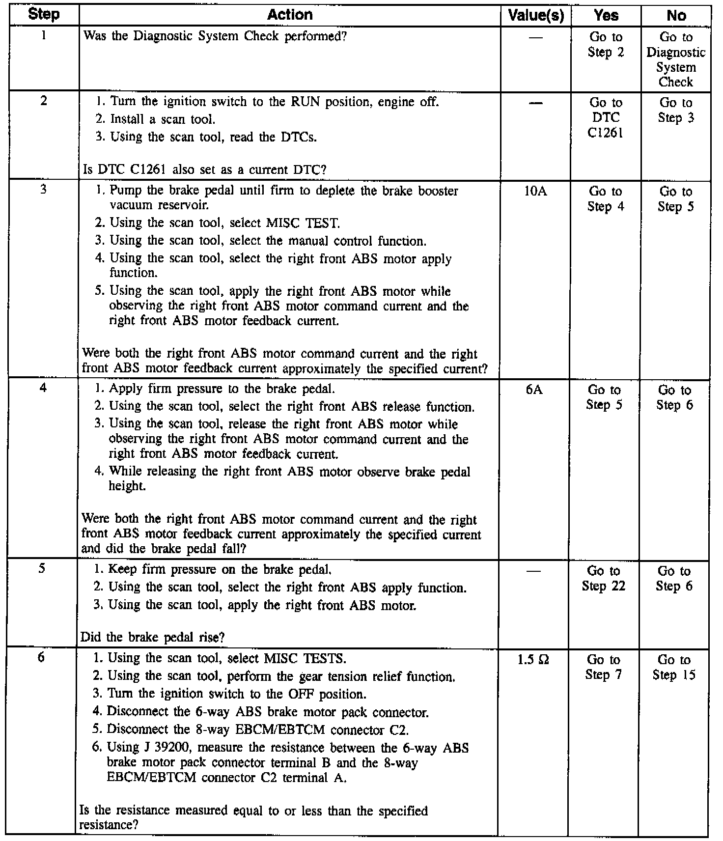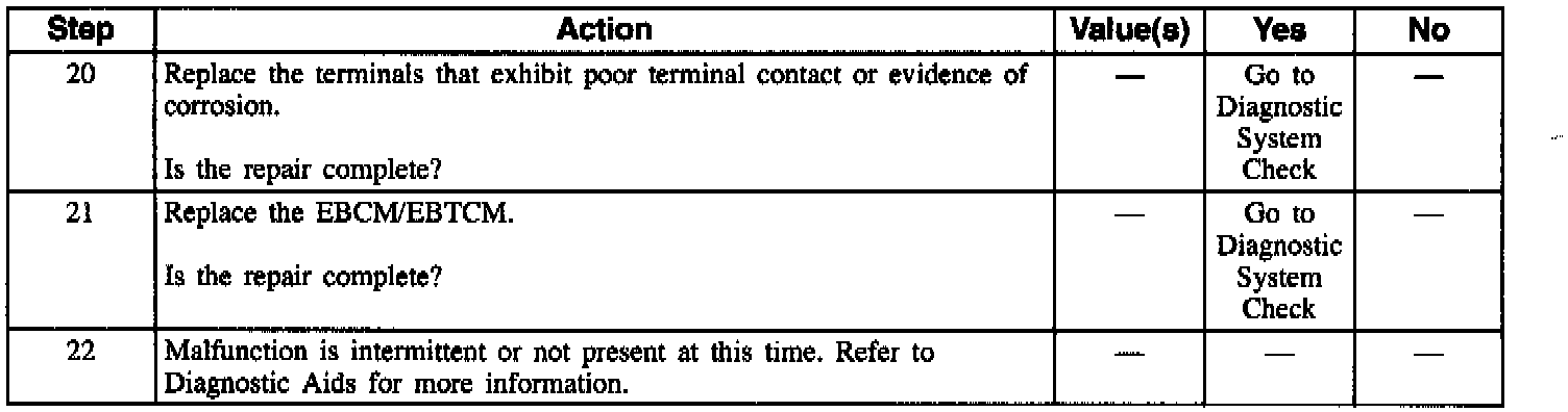 An intermittent malfunction in this DTC may result from a mechanical part of the system that sticks, binds, or slips. The frequency of the malfunction can be checked by using the enhanced diagnostic function of the Scan Tool. If the DTC only occurs once and DTC C1261 also occurs, refer to DTC C1261. If intermittent and enhanced diagnostics shows this DTC occurs during ABS, refer to DTC C1261. Depending on the frequency of the malfunction, a physical inspection of the mechanical parts suspected may be necessary.