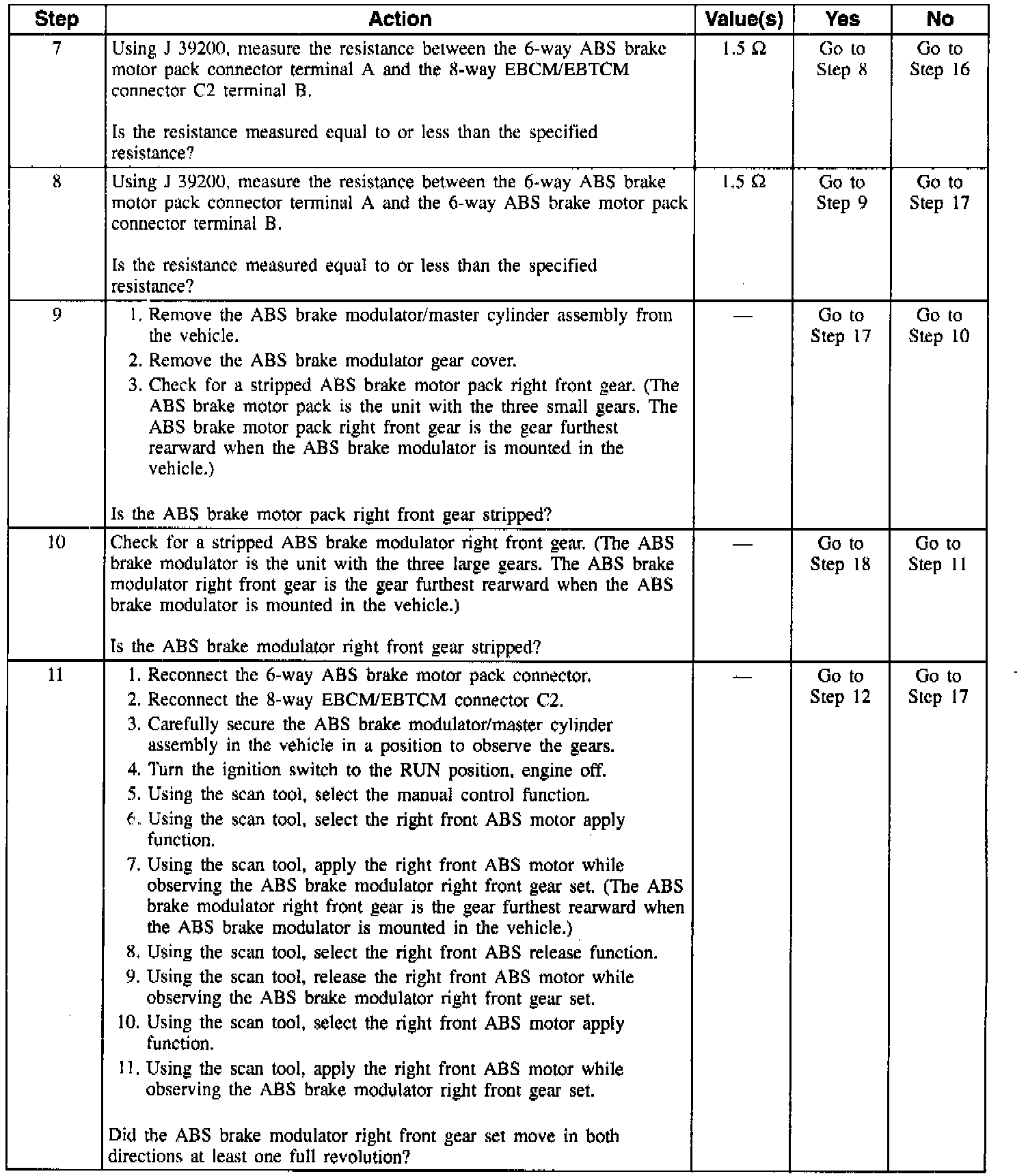 This DTC is designed to detect a stripped nut or gear assembly during initialization. During the homing sequence, the piston should reach the top of the bore resulting in a stalled ABS motor. If this does not occur, the ABS motor must be spinning with little or no resistance, indicating a nut/screw or gear malfunction.
