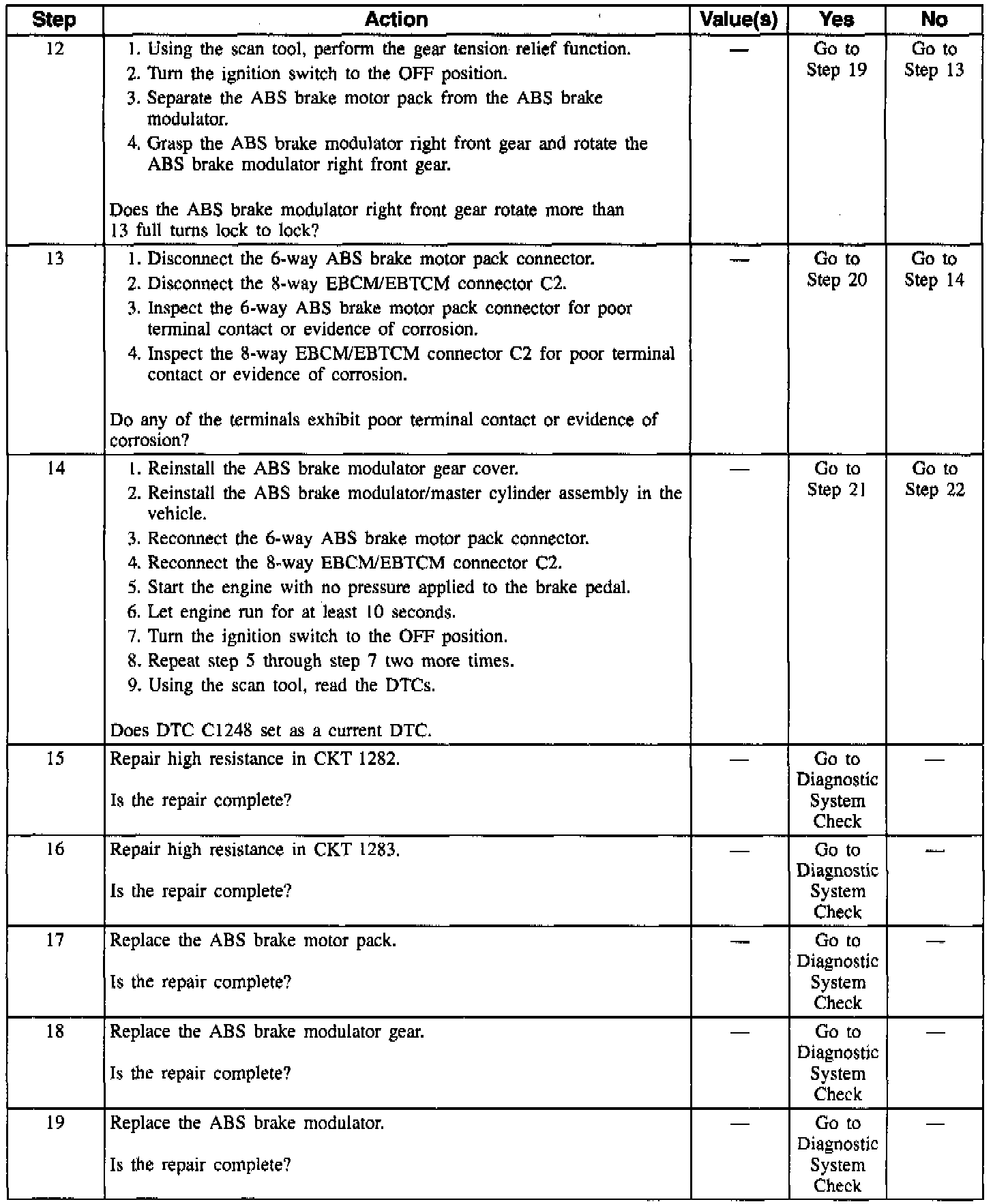 DTC C1248 can only be set during initialization. If the feedback current is less than the command current for a specified period of time, a malfunction exists.