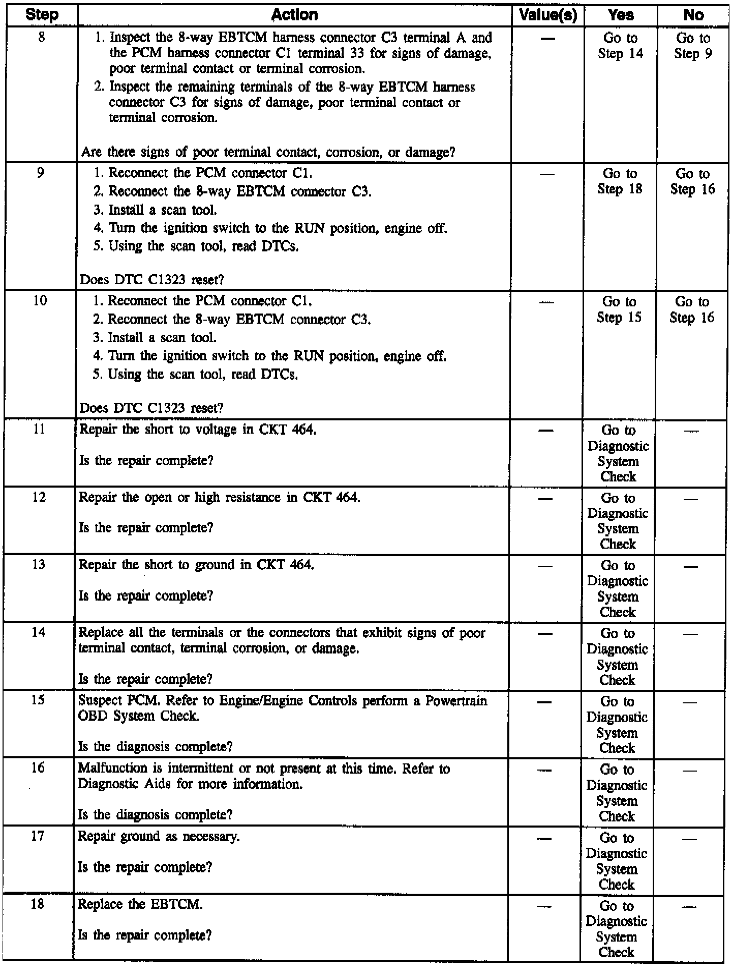 DTC C1323 will set when there is a malfunction in the delivered torque circuit (CKT 464) or if the signal is out of range.