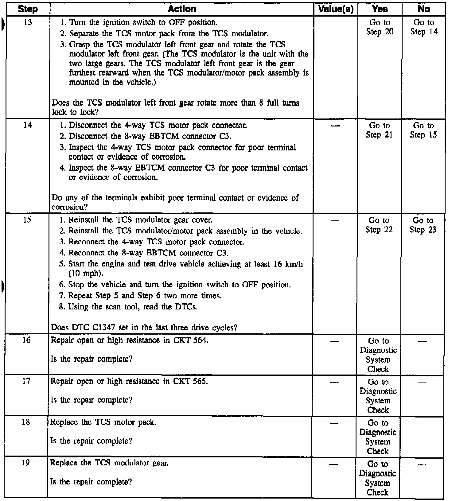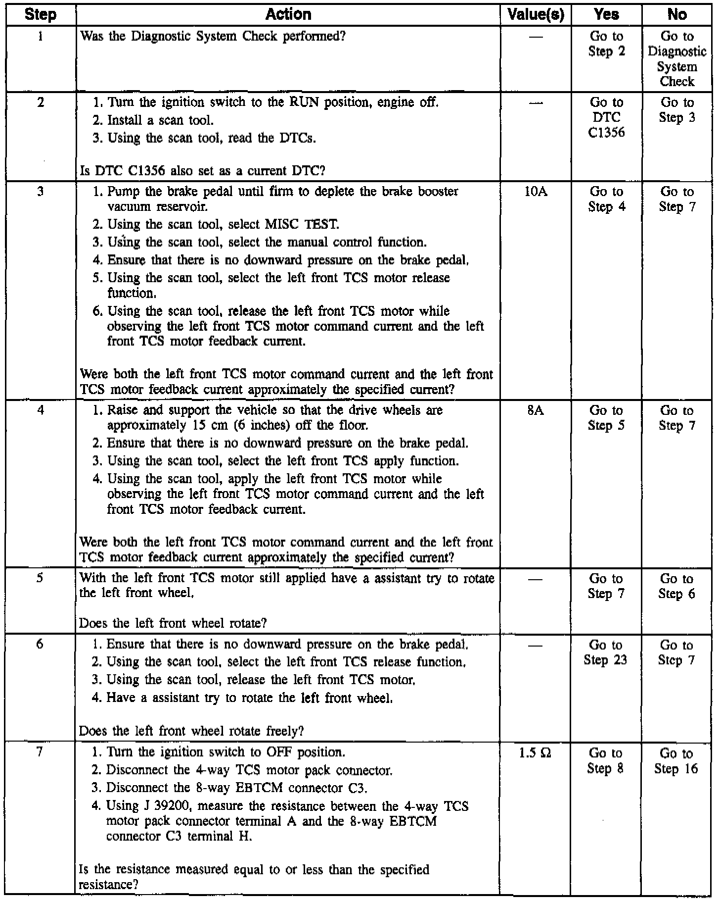 DTC C1347: Left TCS Motor Free Spins: