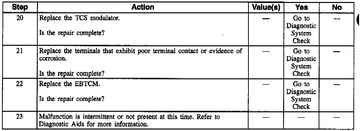 The frequency of the malfunction can be checked by using the enhanced diagnostic function of the scan tool, as described in the Scan Tool manual. If the DTC only occurs once and DTC C1356 also occurs, refer to DTC C1356. If intermittent and enhanced diagnostics shows this DTC occurs during TCS, refer to DTC C1356.