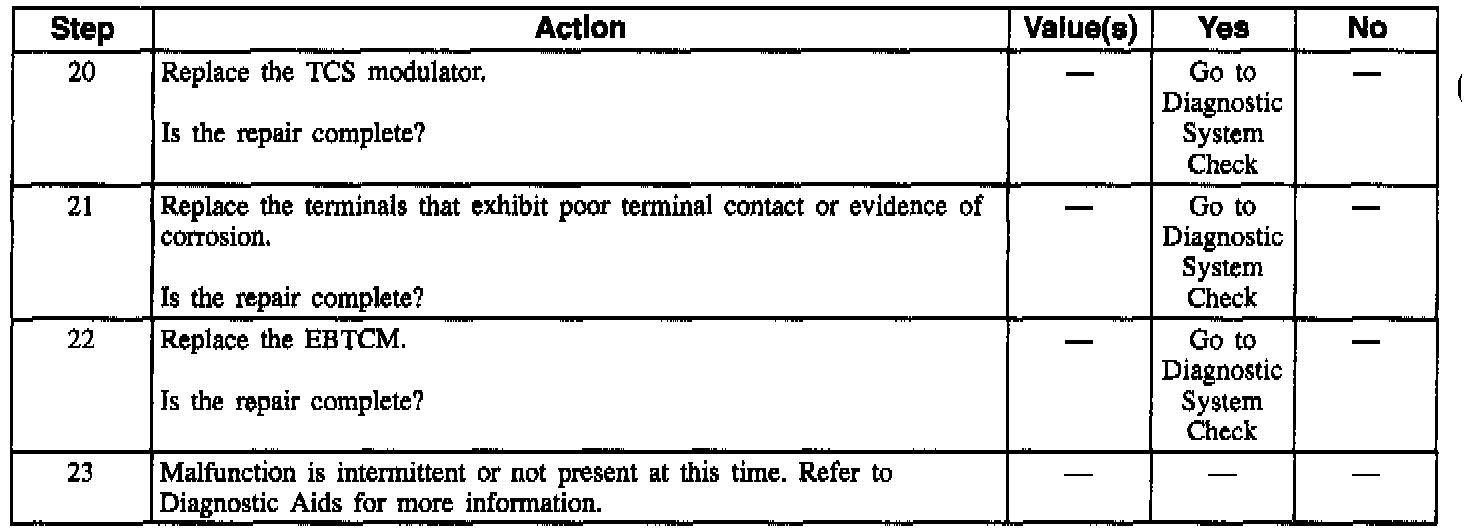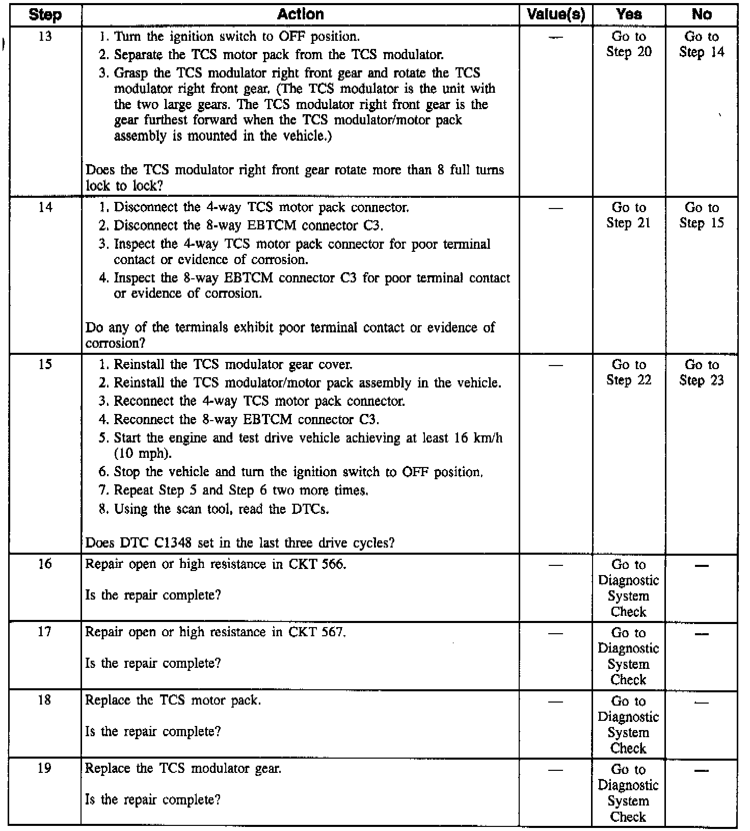 This DTC is designed to detect a stripped nut or gear assembly during initialization. During the homing sequence, the piston should reach the bottom of the bore resulting in a stalled Traction Control System (TCS) motor. If this does not occur, the TCS motor must be spinning with little or no resistance, indicating a nut/screw or gear malfunction.