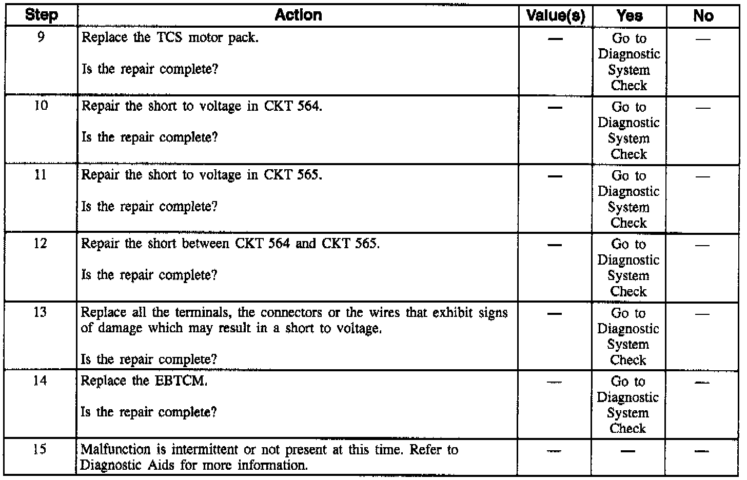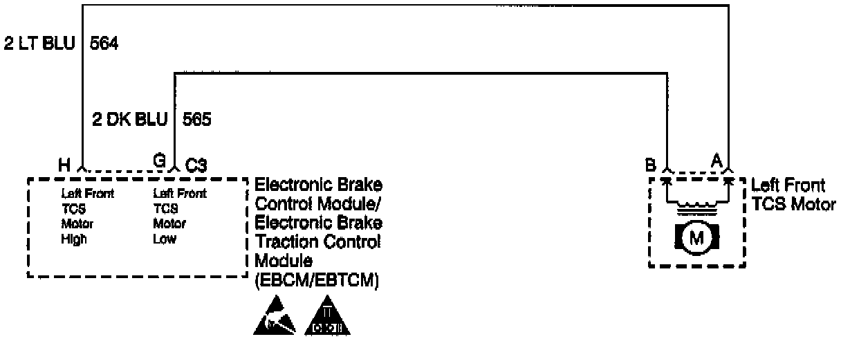 This DTC identifies a Traction Control System (TCS) motor circuit that is shorted to voltage or a TCS motor that has low or no resistance. This malfunction will not allow the TCS motor to be controlled at the commanded current rate or will cause the TCS motor to turn in the opposite direction, or not at all.