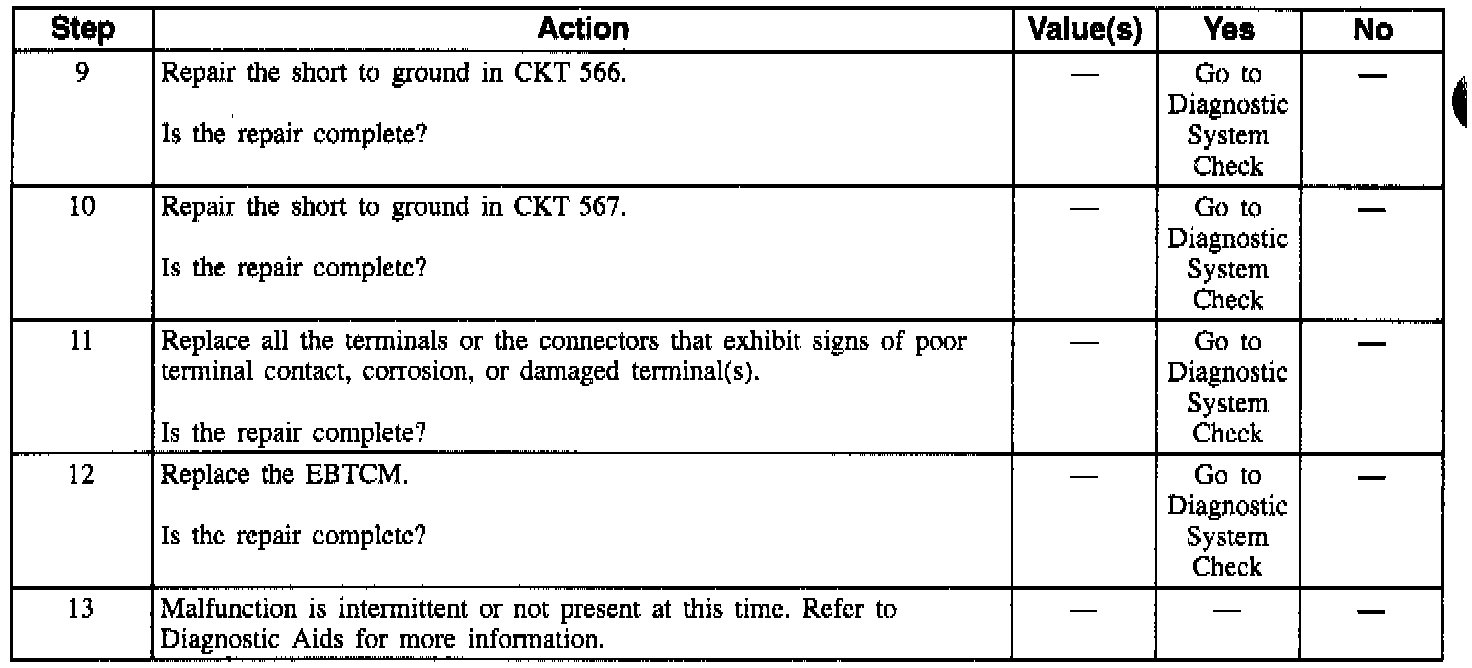 DTC C1362 can be set anytime. If the Electronic Brake Traction Control Module (EBTCM) detects an out of range voltage on either of the right front TCS motor circuits indicating a circuit shorted to ground, a malfunction exists.