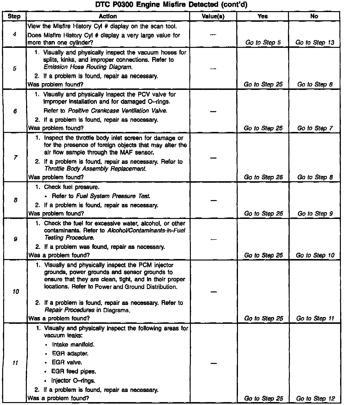 5. Steps 5 through 12 check for conditions that can cause a random cylinder misfire.