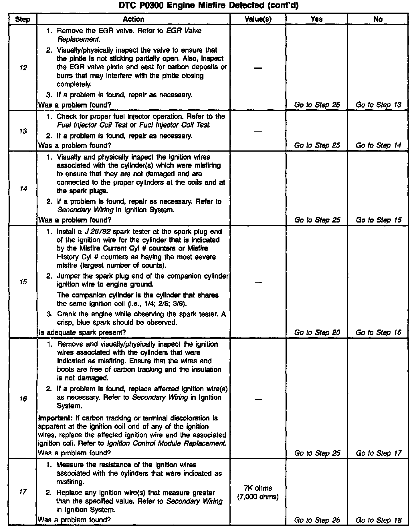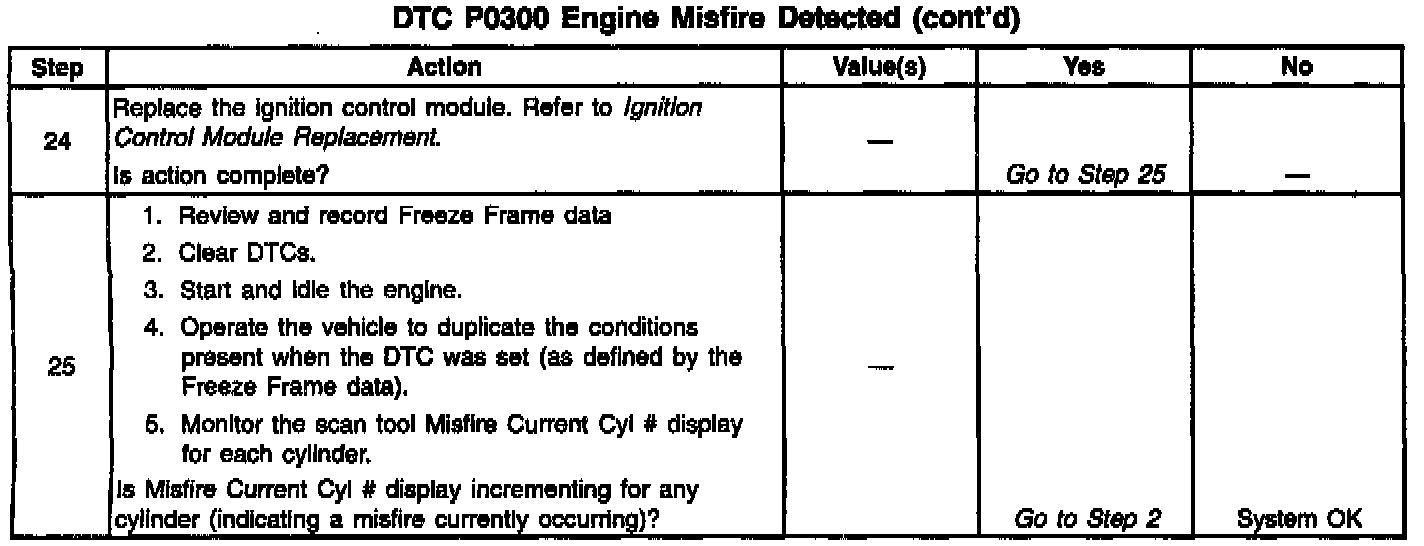 13. Steps 13 through 23 check for conditions that can cause a nonrandom or single cylinder misfire.