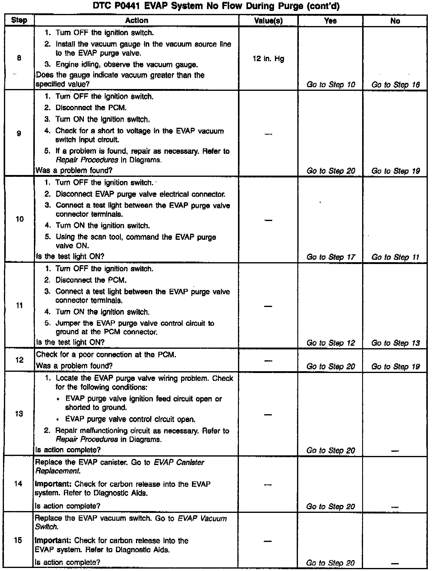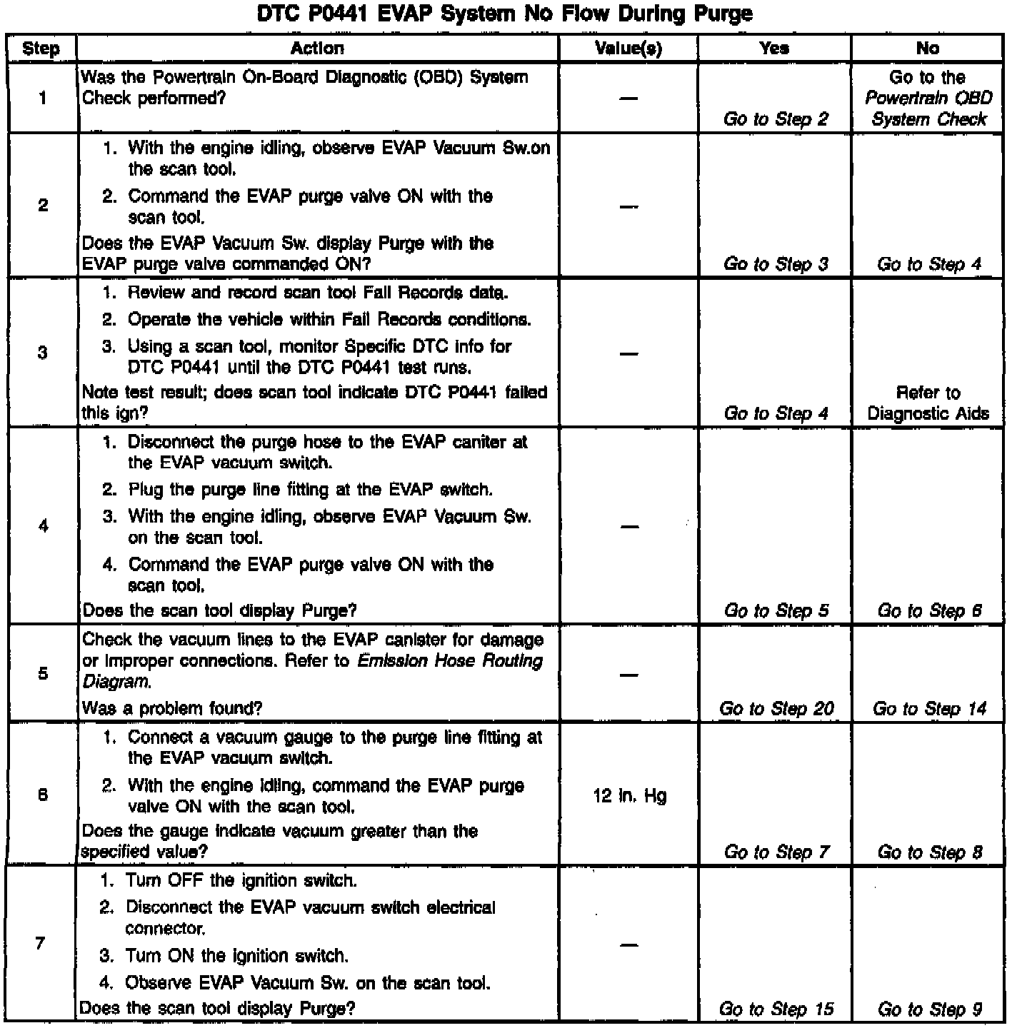 13. Proceed with the DTC P0441 diagnostic table.