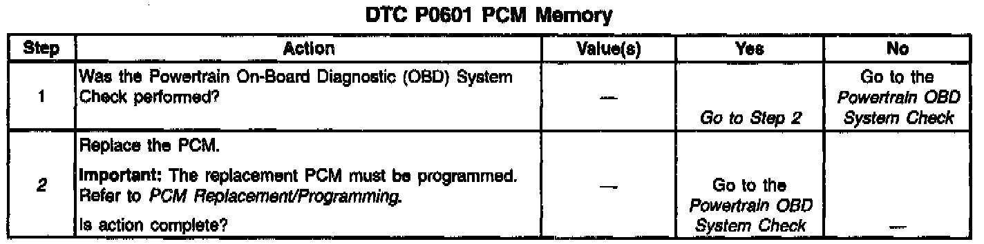 DTC P0601 indicates that the contents of the EEPROM have changed since the PCM was programmed. The only possible repair is PCM replacement. Remember to program the replacement PCM with the correct software and calibration for the vehicle.