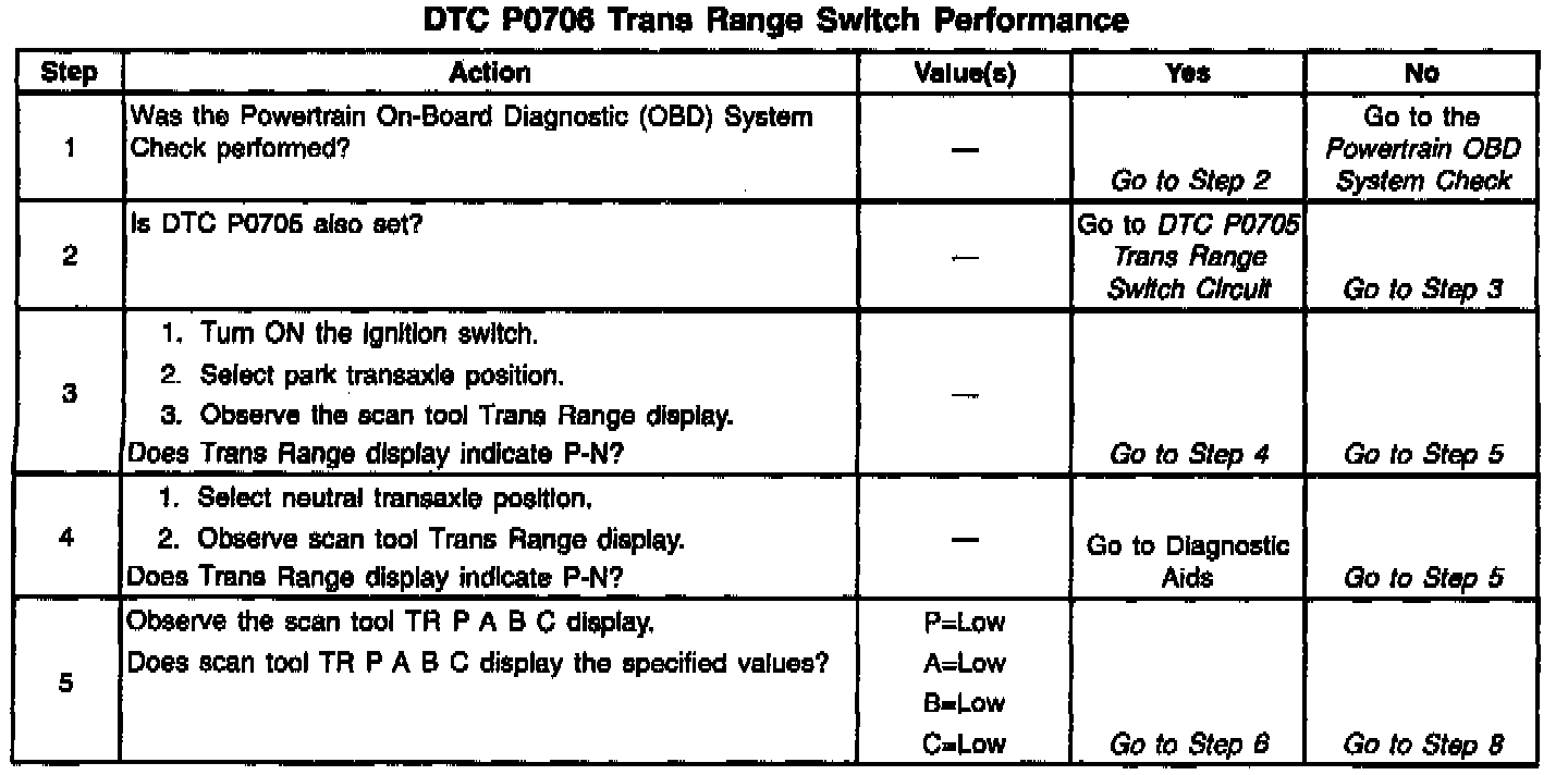 DTC P0706 set indicates a misadjusted Park Neutral Position/Transaxle Range Switch.