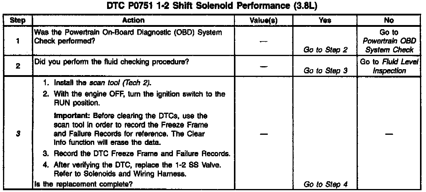 When the PCM detects a 2-3 only or a 1-4 only shift pattern, then DTC P0751 sets. DTC P0751 is a type A DTC.