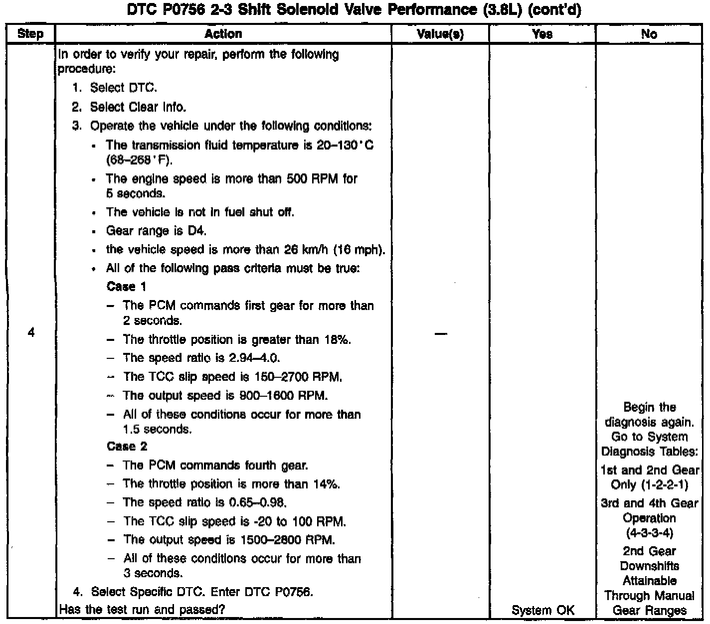 ^ The PCM commands fourth gear for more than 1 second.