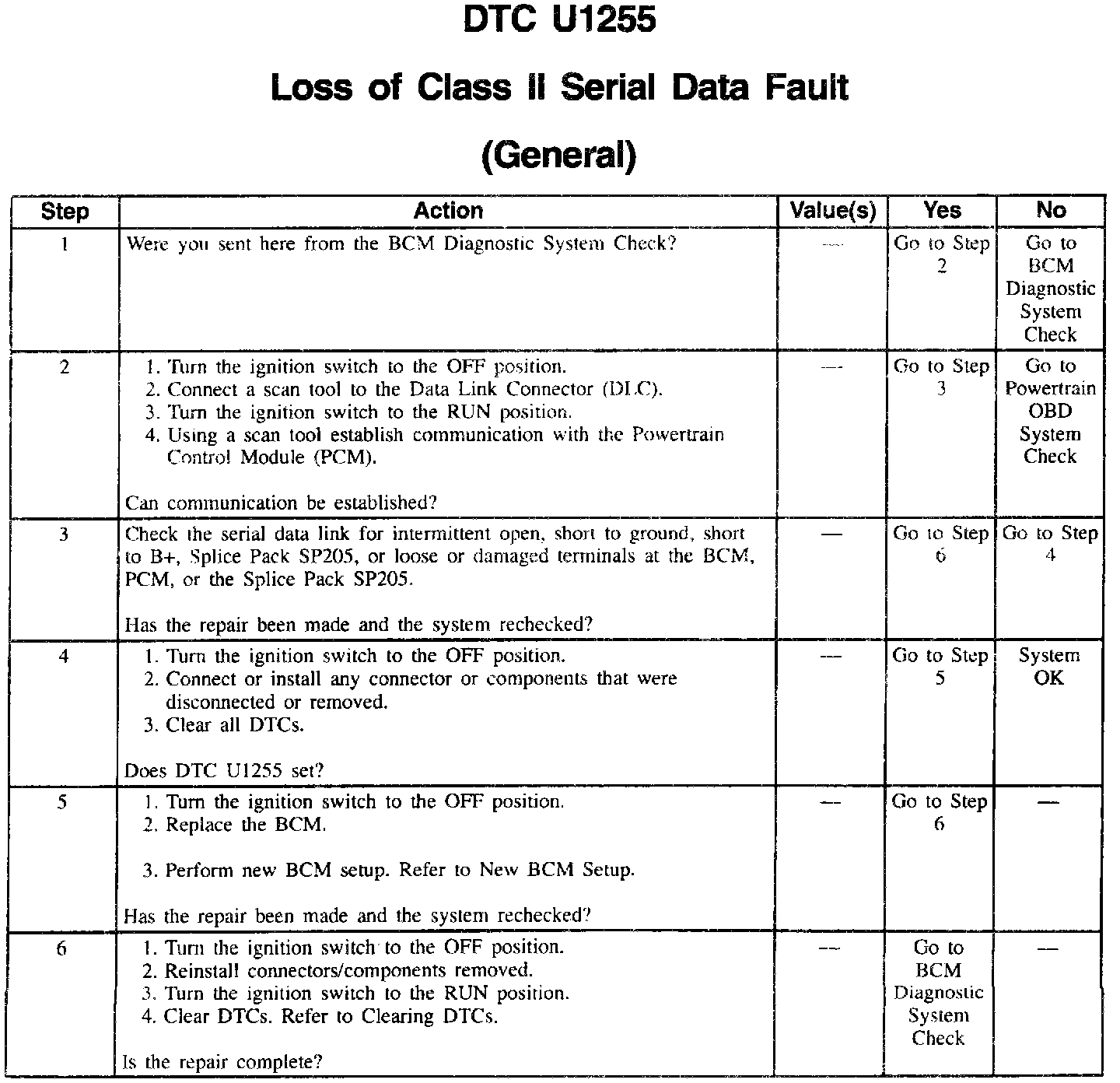 DTC U1255 Loss Of Class II Serial Data Fault: