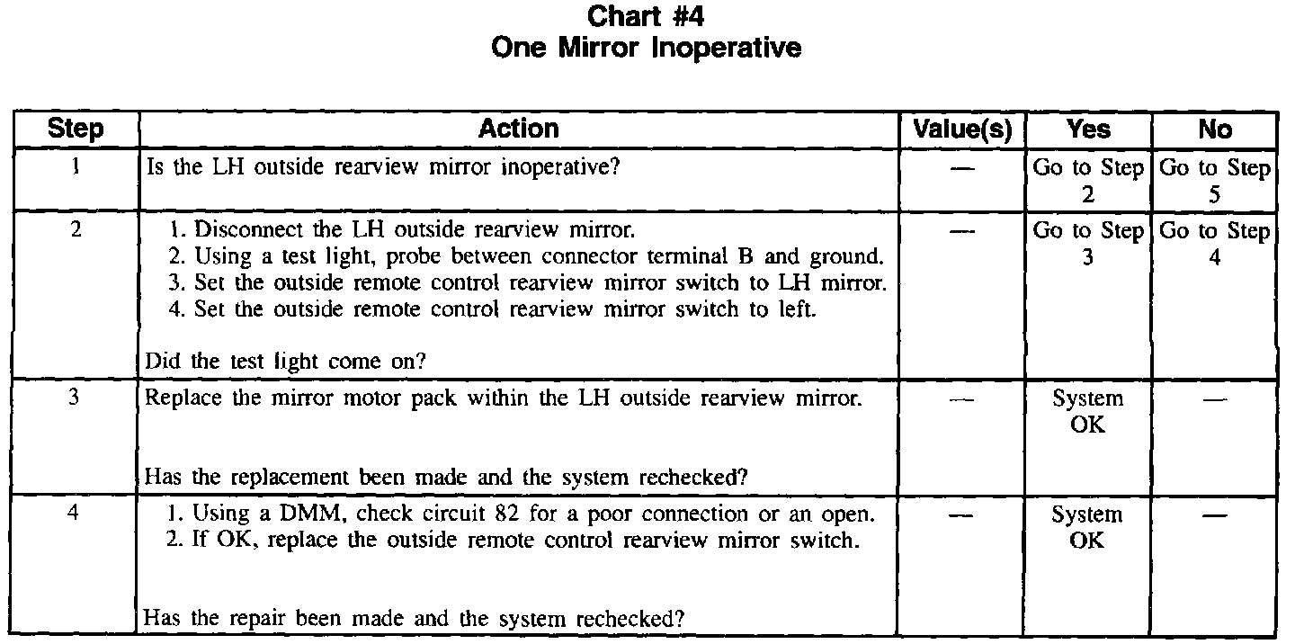 Chart #4 One Mirror Inoperative (Part 1 Of 2):