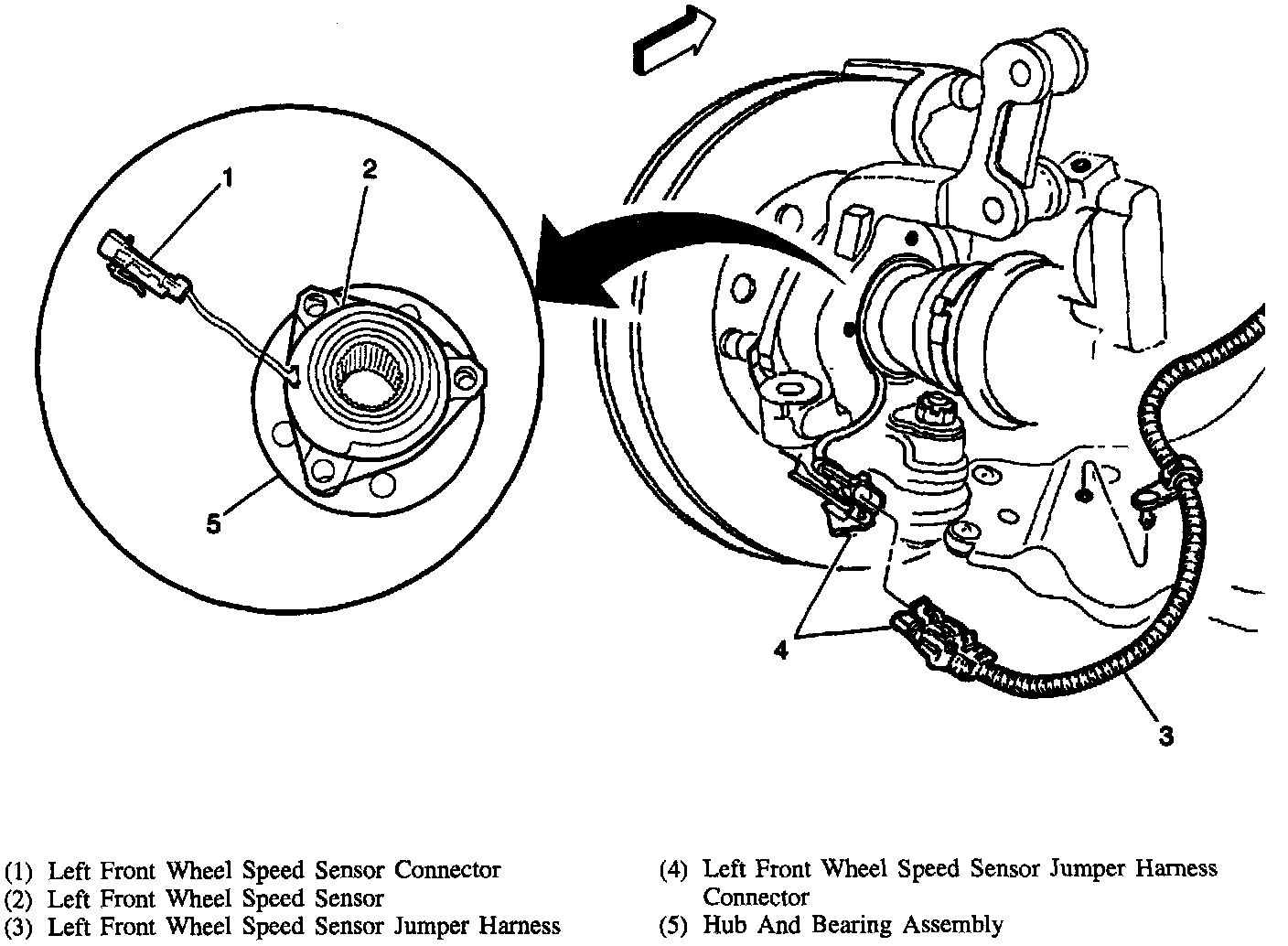 4. Front wheel speed sensor electrical connector.