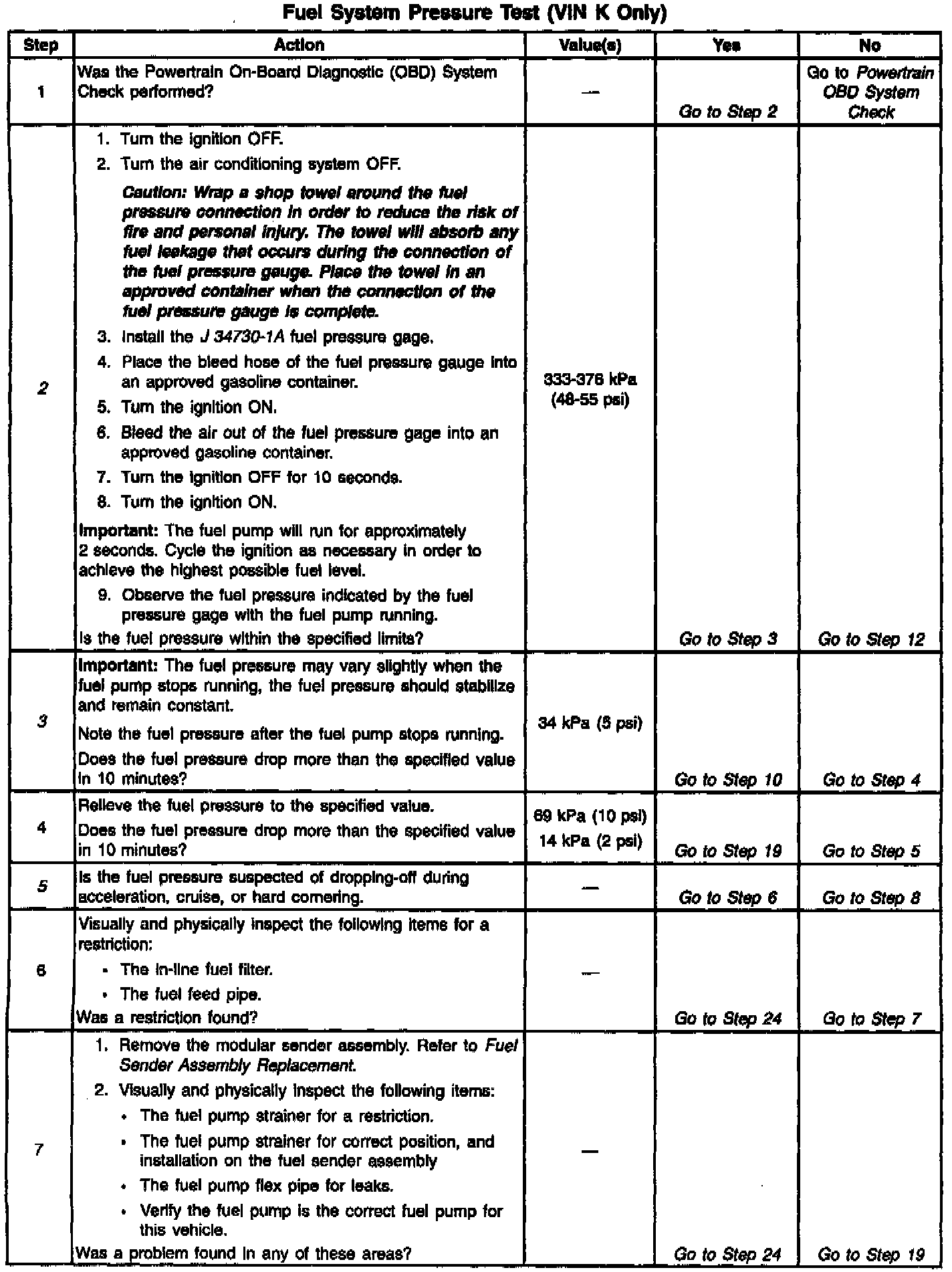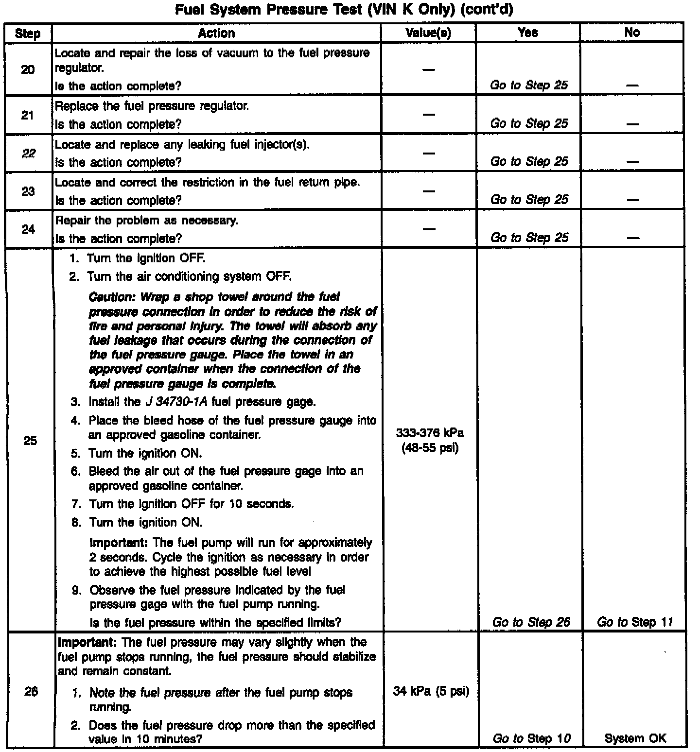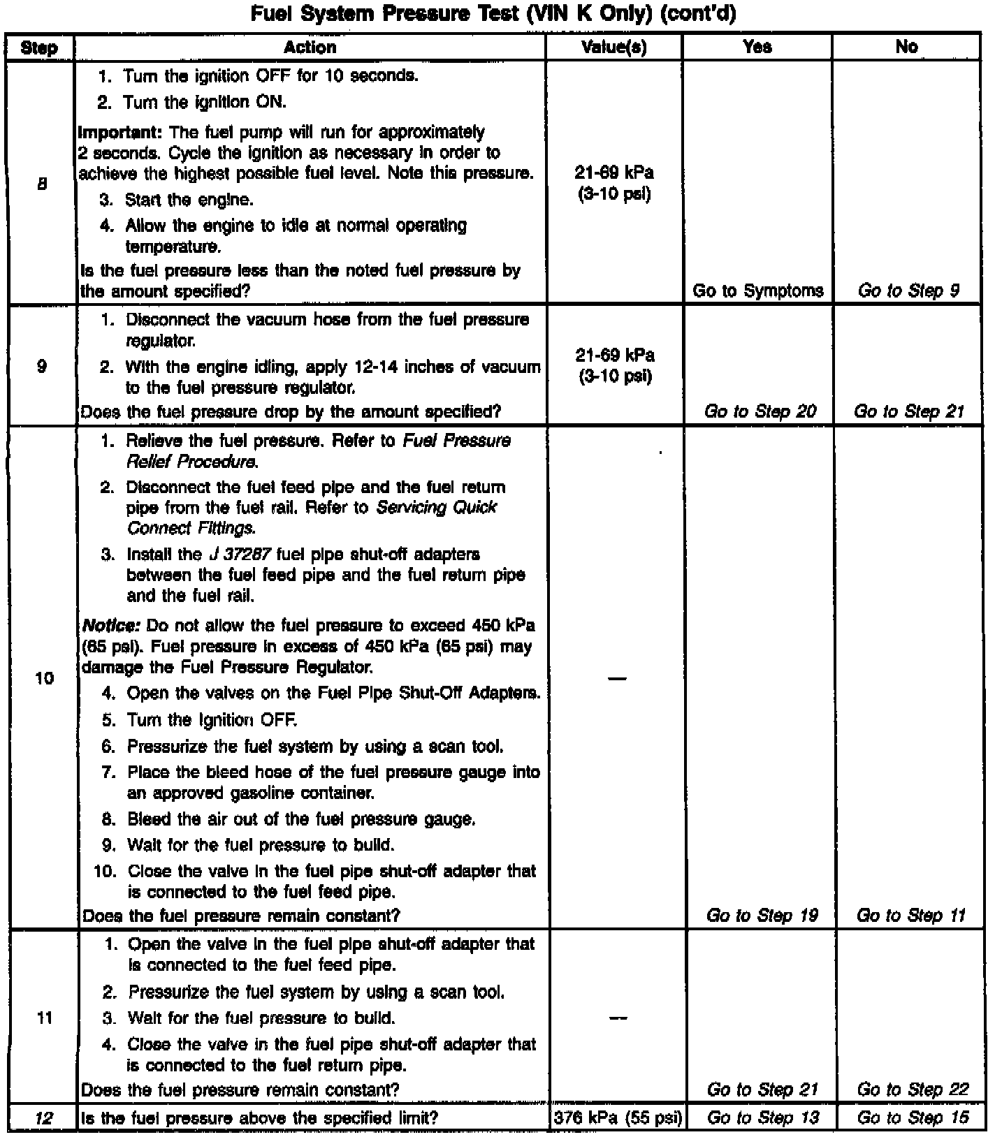 13. This test determines if the high fuel pressure is due to a restricted fuel return pipe or if the high fuel pressure is due to a faulty fuel pressure regulator.