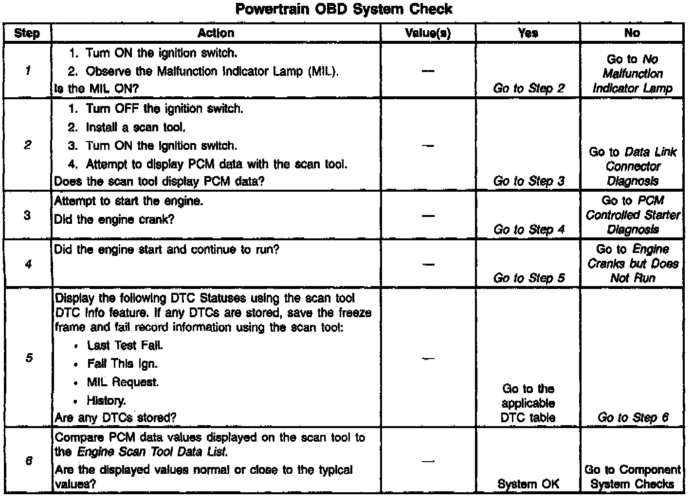 - Powertrain/On-Board Diagnostic System Check