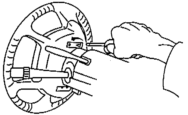2. Use a flat bladed tool on the back side of the inflatable restraint steering wheel module, to release the four leaf springs. Gently pull on the module while the leaf springs are released.