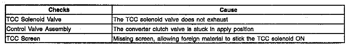 Converter Clutch Does Not Release