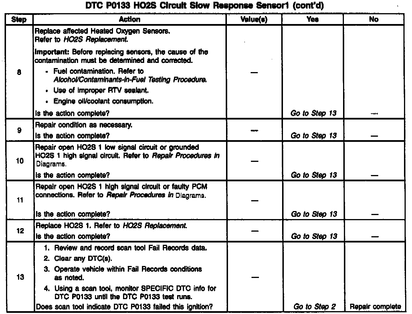 If PTC P0133 cannot be duplicated, Reviewing the Fail Records vehicle mileage since the diagnostic test last failed may help determine how often the condition that caused the DTC to be set occurs. This may assist in diagnosing the condition.