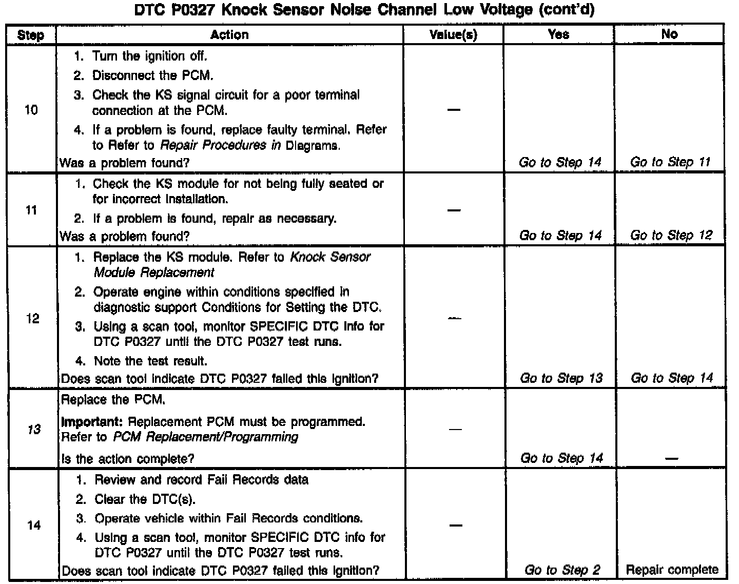 ^ The PCM is monitoring a ESC noise channel voltage level below 0.4 volt.