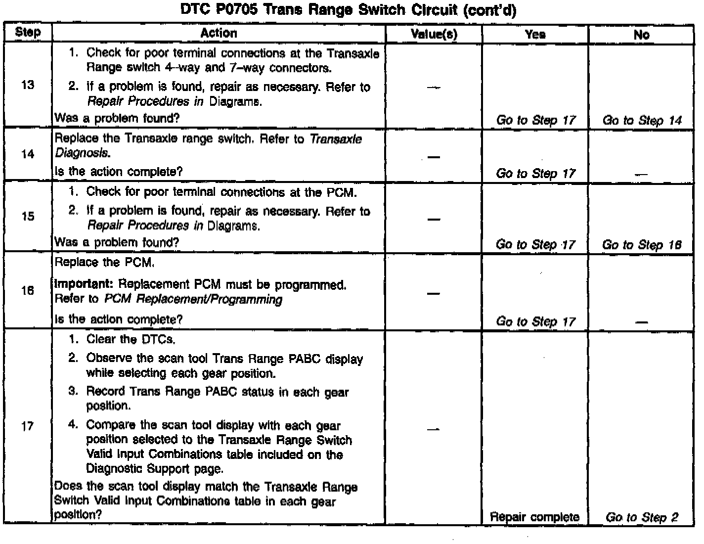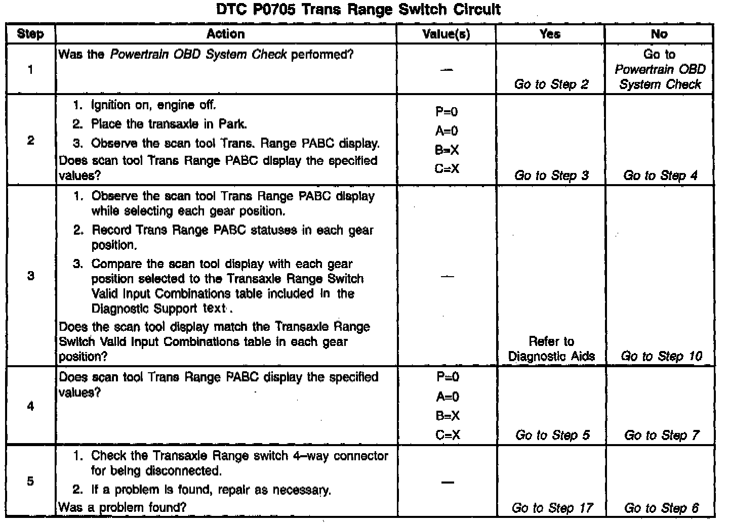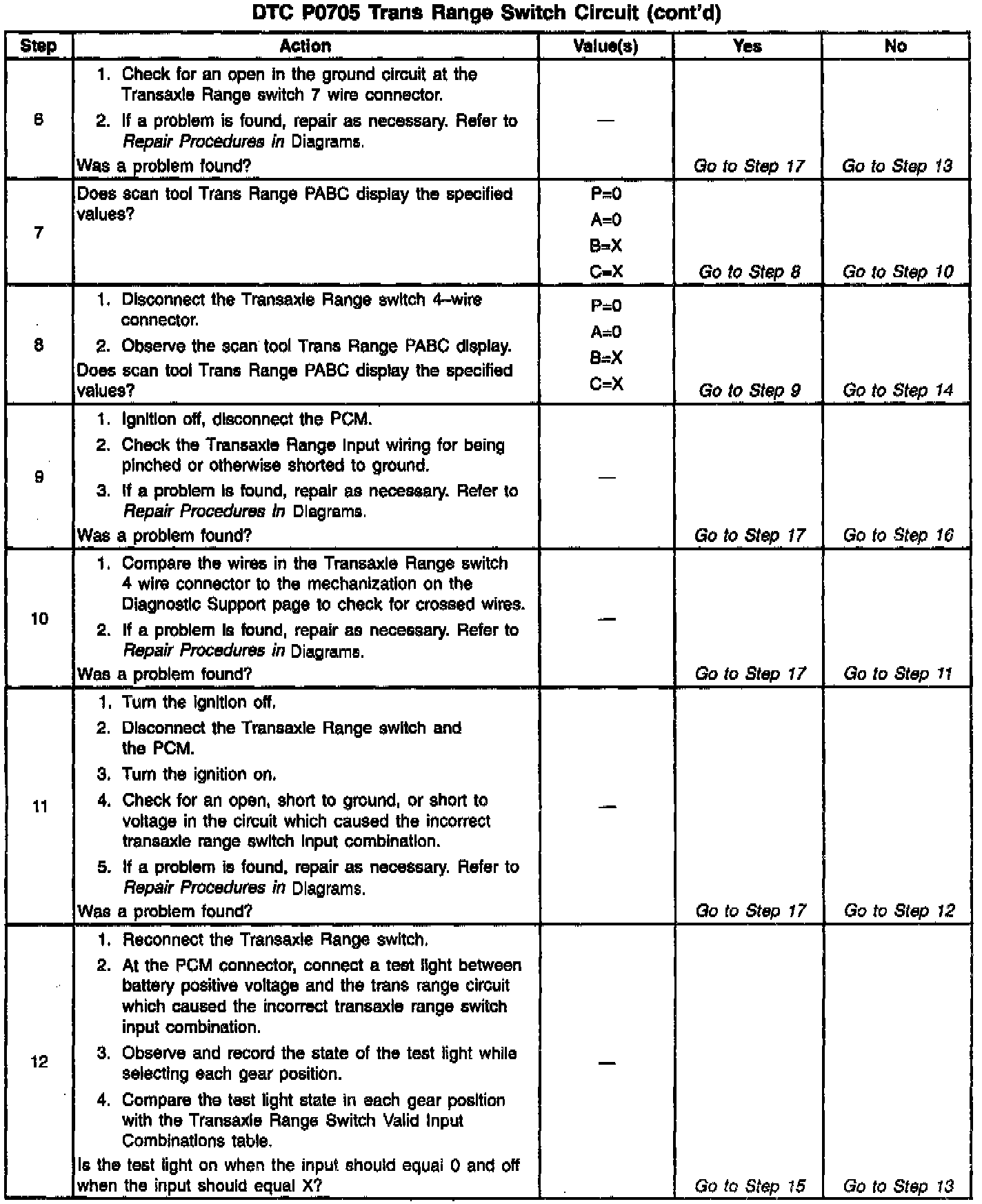 ^ Damaged harness. Inspect the wiring harness for damage. If the harness appears to be OK, observe the Transaxle Range A/B/C/P switch display on the scan tool while moving connectors and wiring harnesses related to the sensor. A change in the display will indicate the location of the fault.