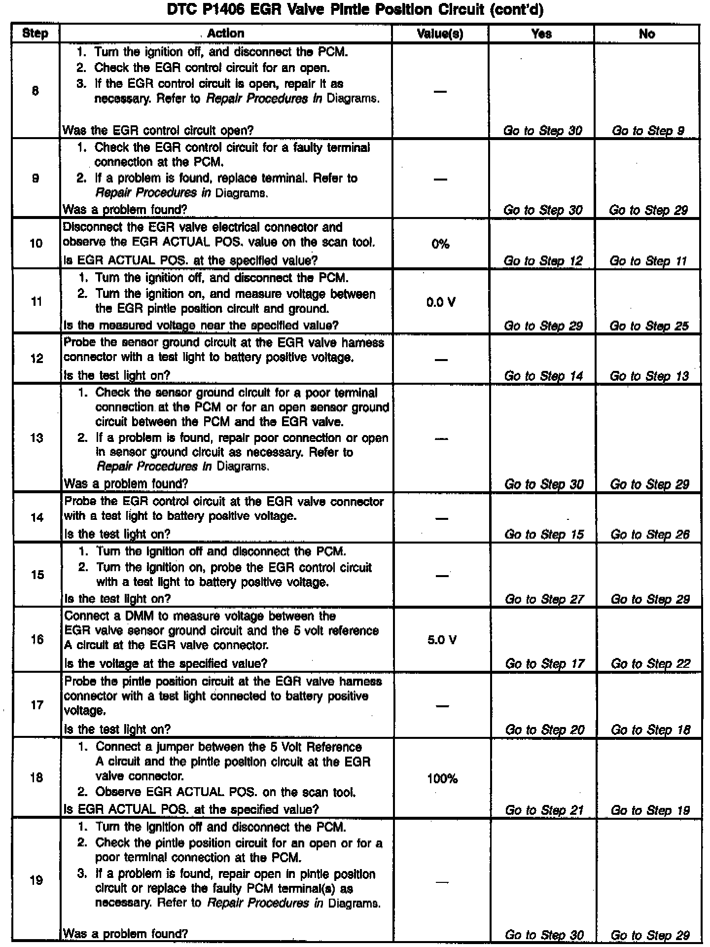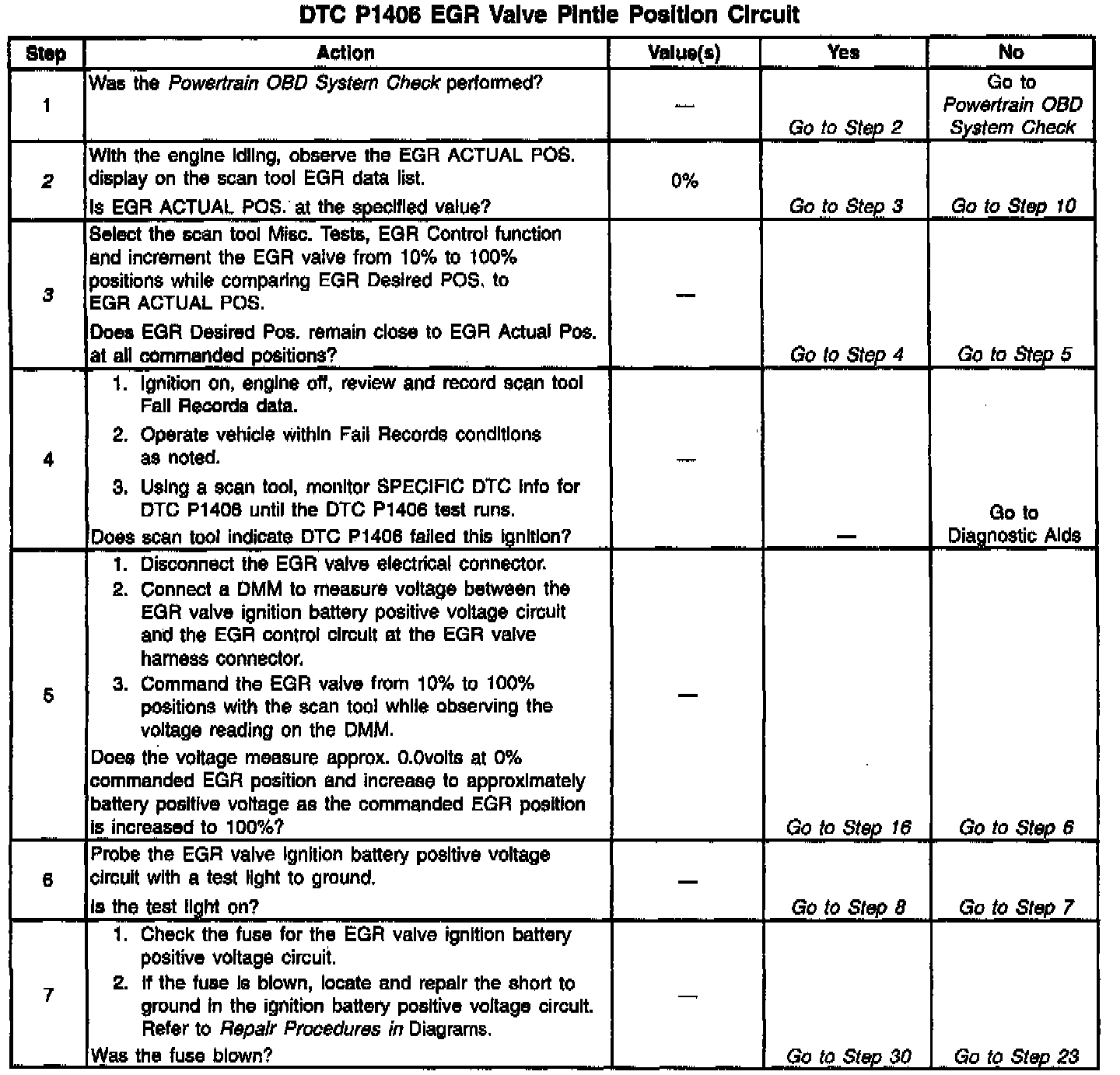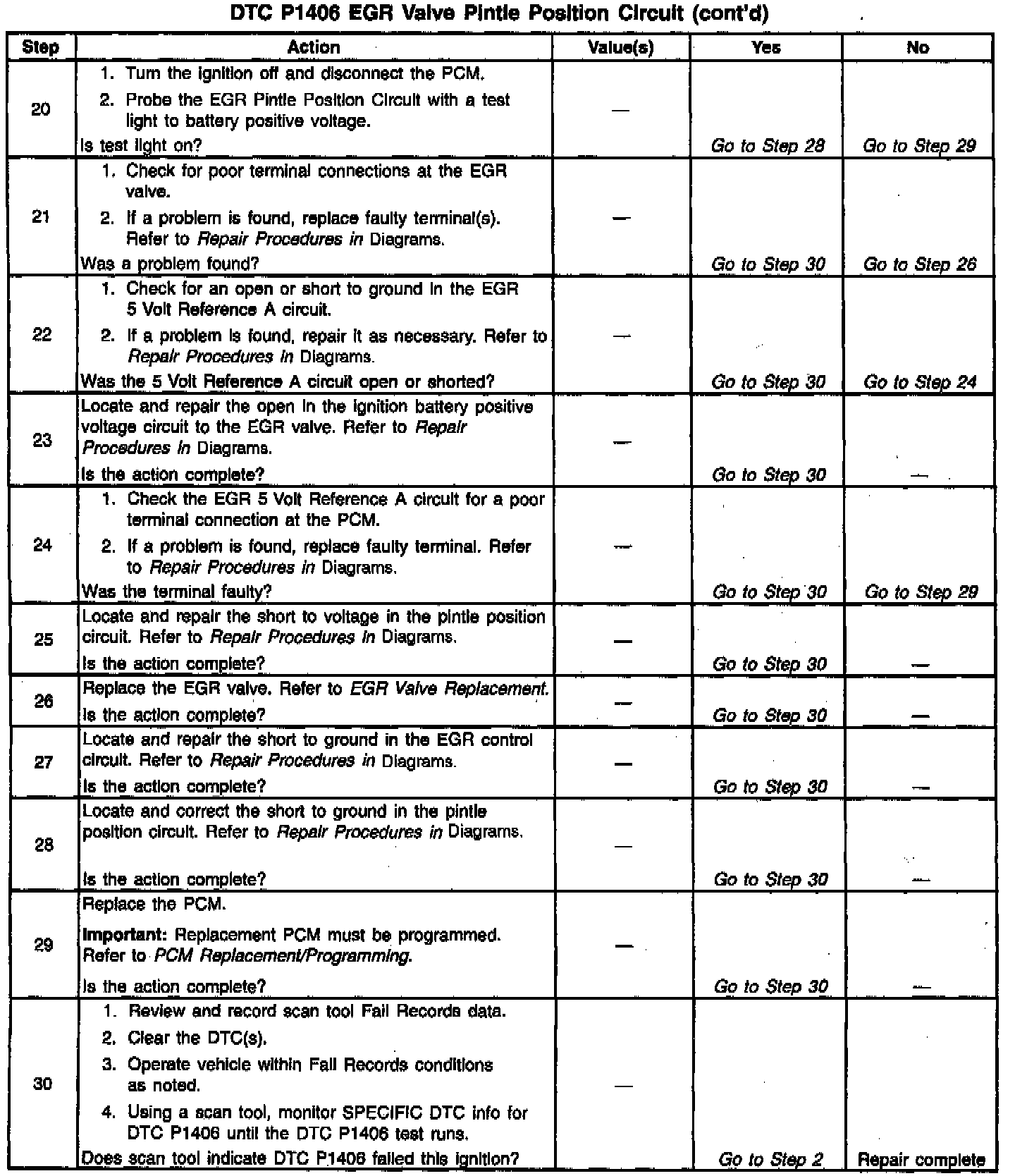 The PCM monitors the EGR valve pintle position input to ensure that the valve responds properly to commands from the PCM and to detect a fault if the pintle position sensor and control circuits are open or shorted. If the PCM detects a pintle position signal voltage outside the normal range of the pintle position sensor, or a signal voltage that is not within a tolerance considered acceptable for proper EGR system operation, the PCM will set DTC P1406.
