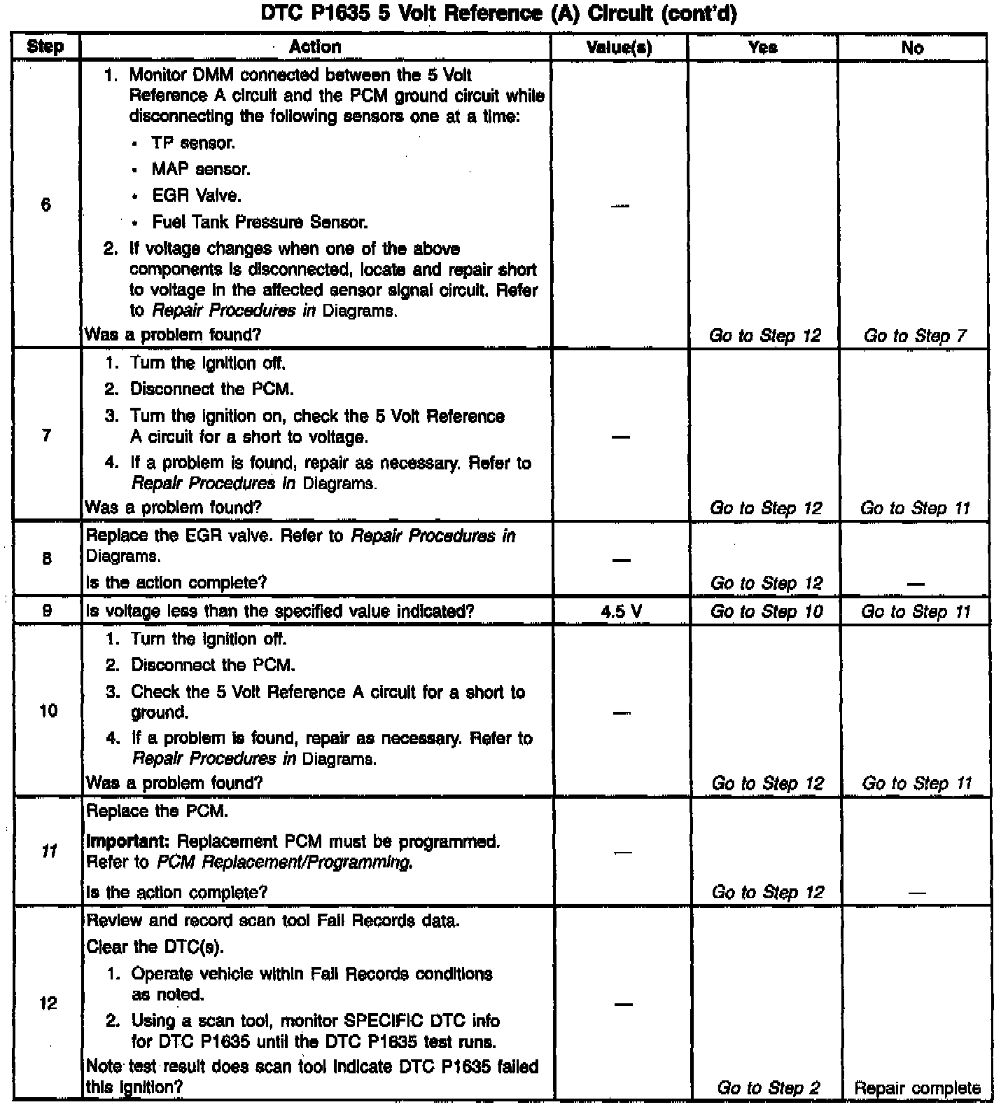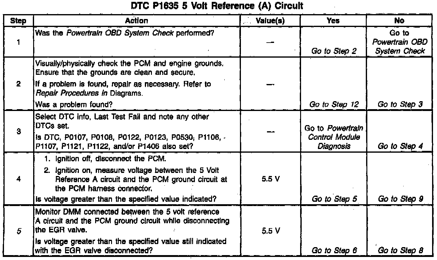 The PCM monitors the voltage on the 5 Volt Reference A circuit. If the voltage is out of tolerance, the PCM will set DTC P1635.
