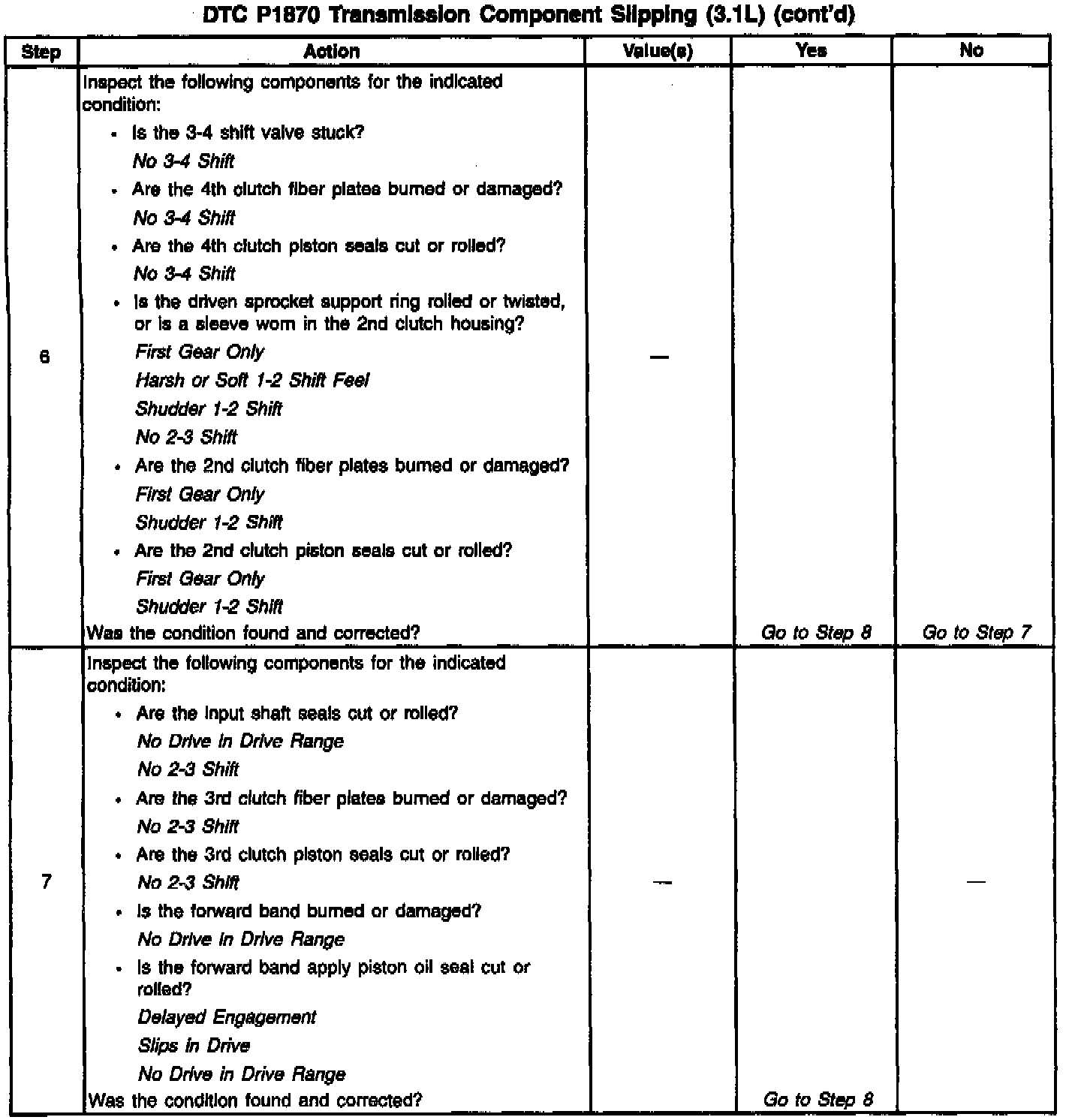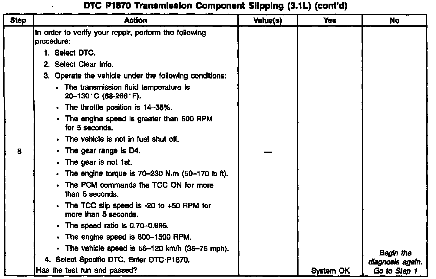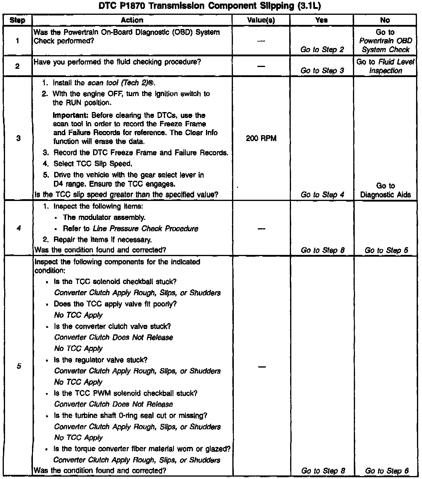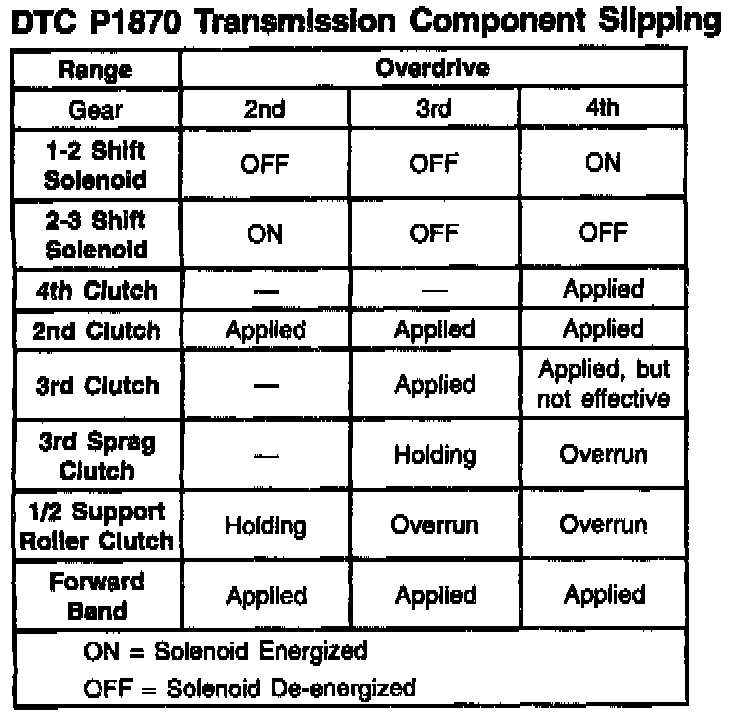 When the PCM detects an excessive amount of slip when the TCC is engaged, then DTC P1870 sets. DTC P1870 is a type B DTC.